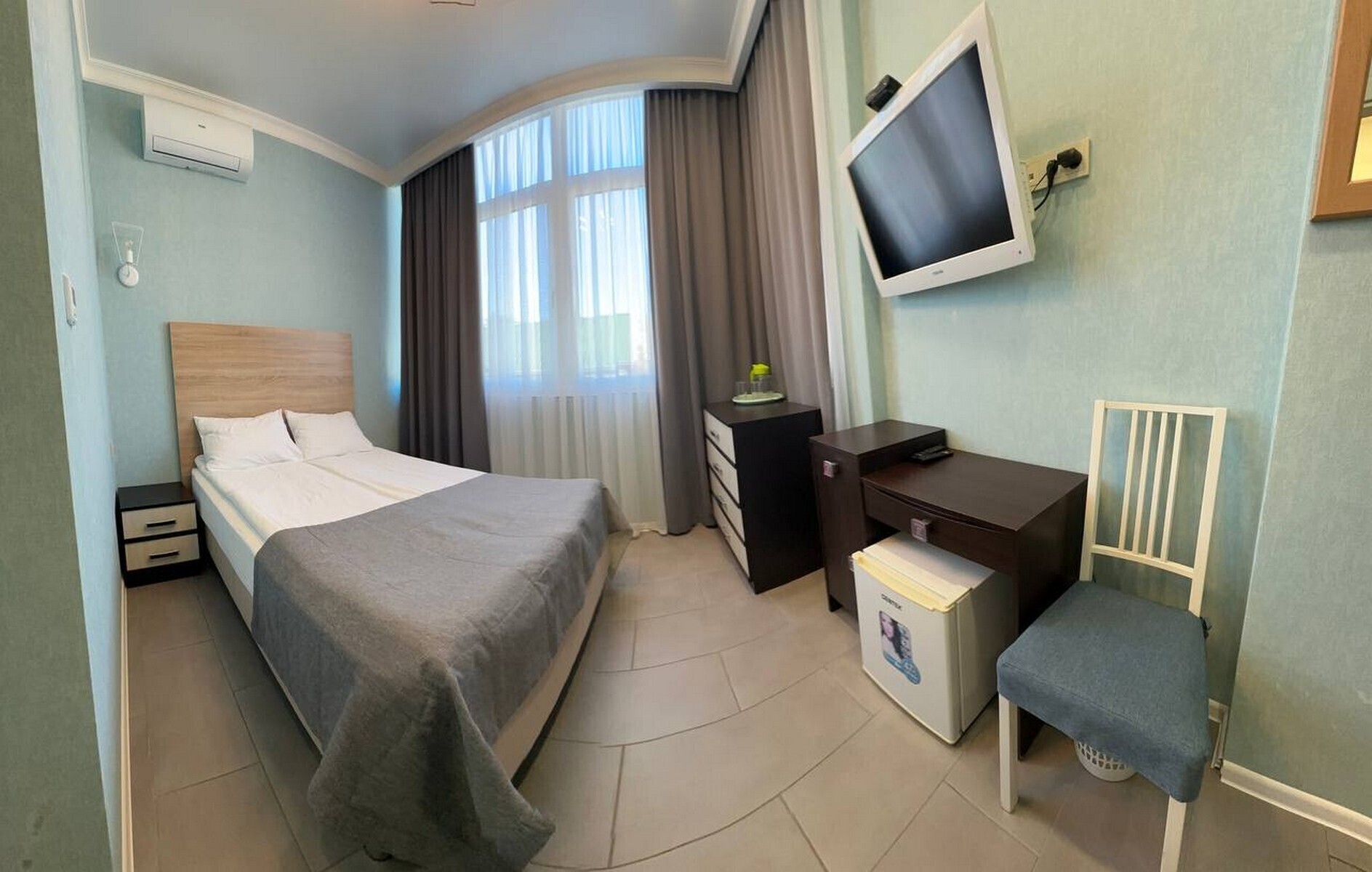 В номере: Имеется телевизор, кондиционер, шкаф, вешалка, зеркало, стол обеденный, рабочий стол, холодильник, фен, стулья. Индивидуальная ванная комната: душ, раковина, туалет.