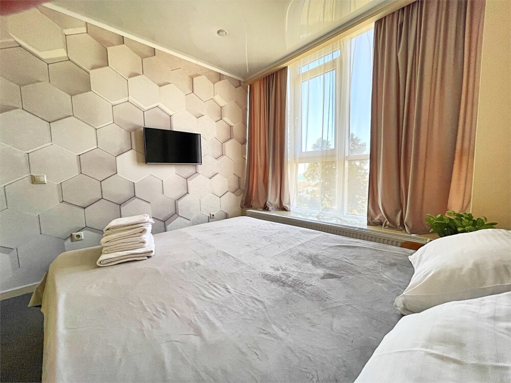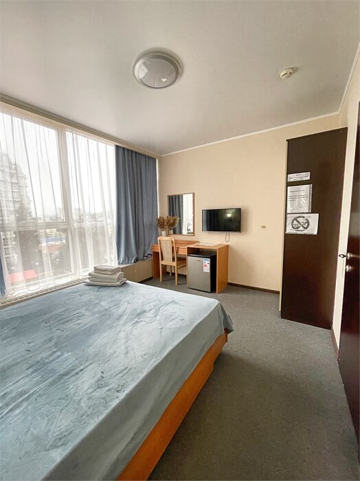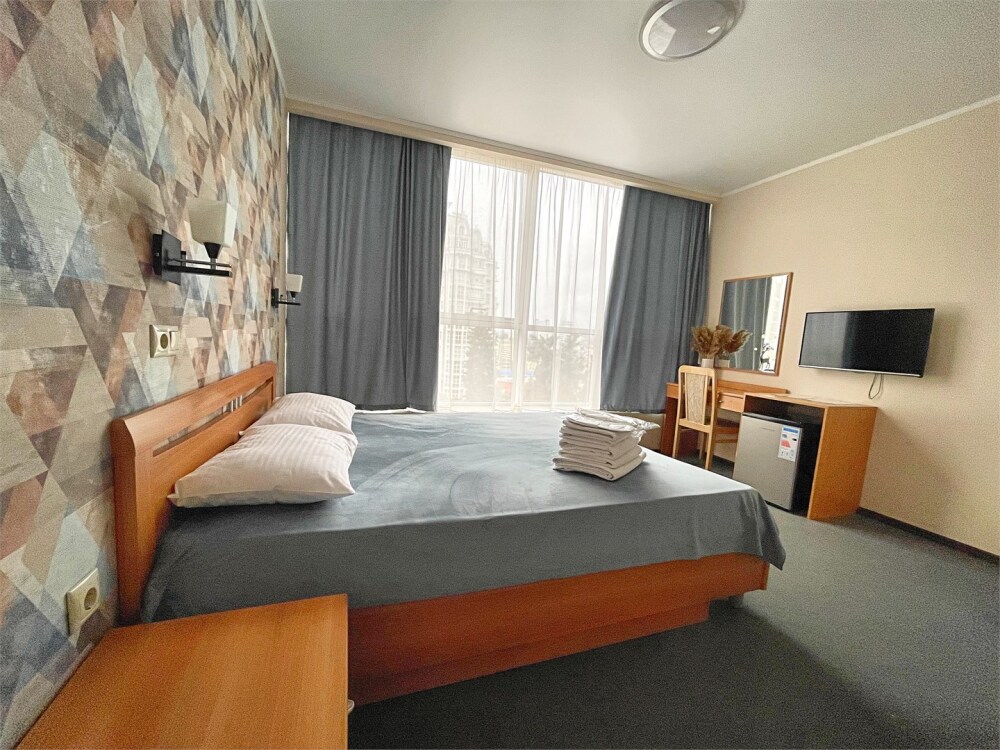 Уютный двухместный номер с панорамными окнами и видом на город. В номере душ, туалет, телевизор, холодильник, кондиционер, фен, белоснежные полотенца и гигиенические принадлежности.