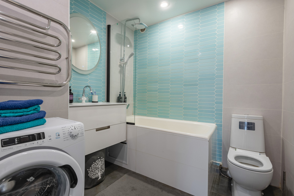 - на кухне есть всё необходимое: микроволновка, чайник, газовая плита, посудомоечная машина, холодильник, посуда, столовые приборы и т. д;