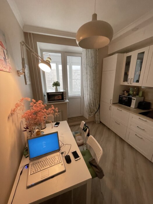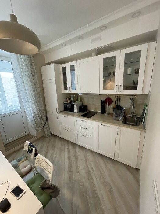 Кухня: Полноценный гарнитур, вся необходимая посуда для приготовления еды.
