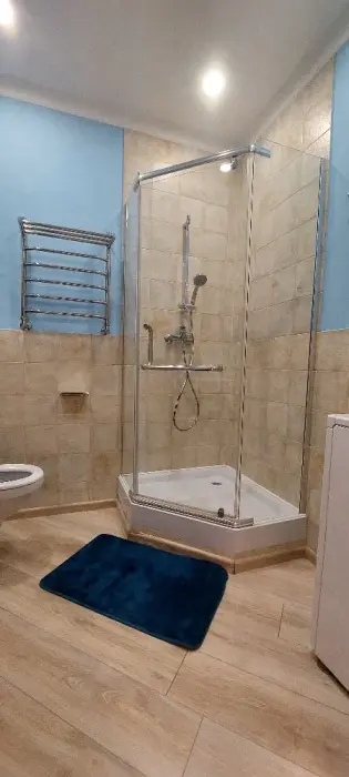 Ванная: Санузел совмещённый, душ, водонагреватель, фен, средства гигиены (шампунь/гель для душа) — в наличии.