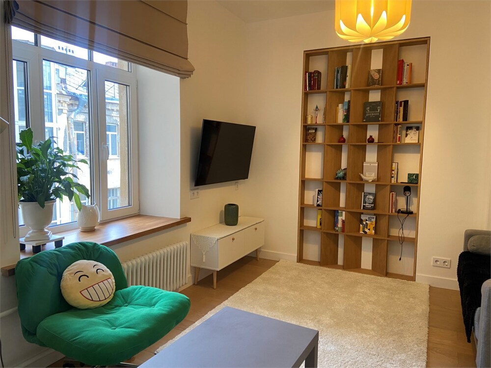 Уютная квартира‑студия — отличный вариант для троих. Здесь есть всё, чтобы сразу заселиться и жить с комфортом: удобная мебель, двуспальная кровать и раскладной диван, оборудованная кухня — можно готовить любимые блюда, обеденная зона для завтраков и ужинов, душ и стиральная машина с сушилкой — никаких хлопот с бельём. А ещё — очень удачное расположение: до метро «Чкаловская» всего семь минут пешком, рядом множество кафе и ресторанов, недалеко Васильевский остров. Вы живёте в историческом районе Петербурга, прямо под знаменитой мозаикой доходного дома герцога Лейхтенбергского. Уютно, удобно и очень атмосферно!