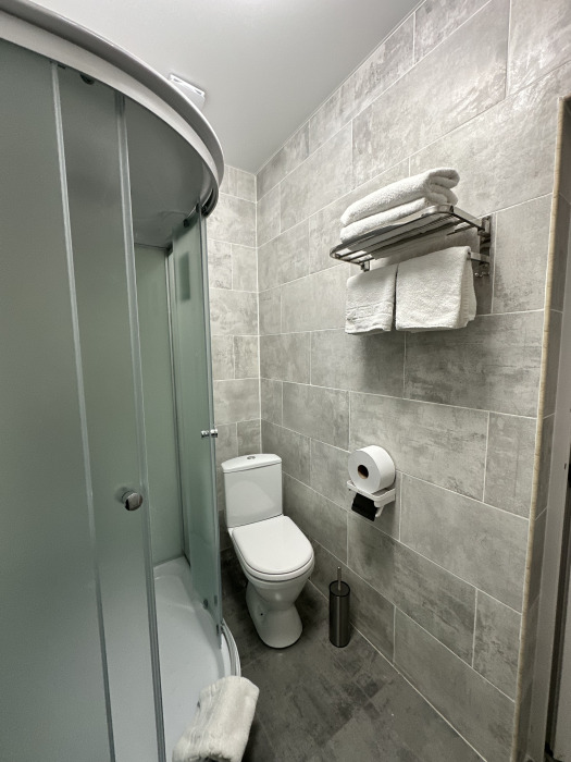 - собственная ванная комната с набором средств личной гигиены (зубная щётка, тапочки, шампунь, гель для душа).
