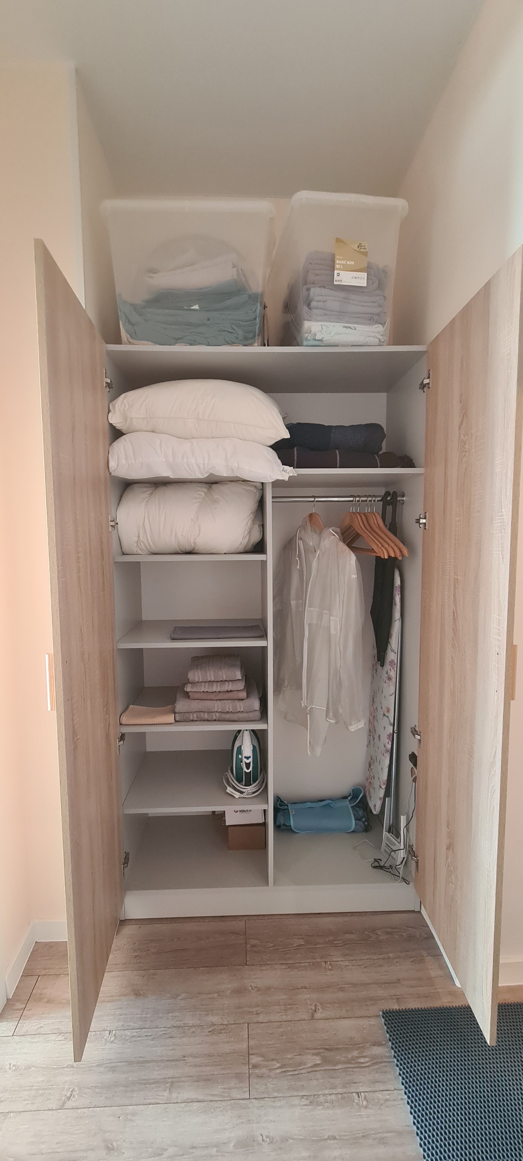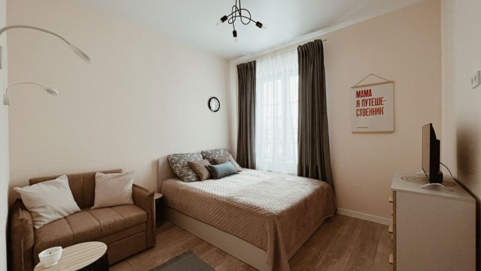 В квартире есть дождевики, зонтики, пляжный лежак, посуда для приготовления пищи, книги для чтения, двухспальная кровать, кресло-кровать, холодильник, стиральная машина, утюг, фен, бельё, полотенца. Всё, что необходимо для незабываемого отдыха.