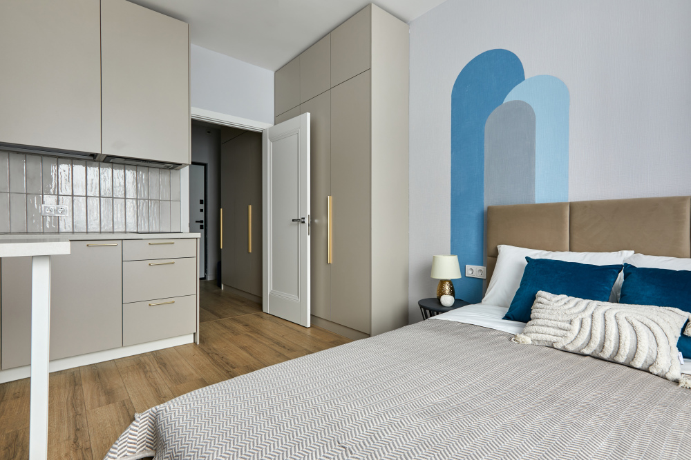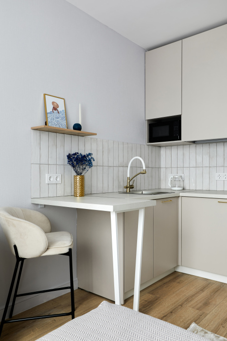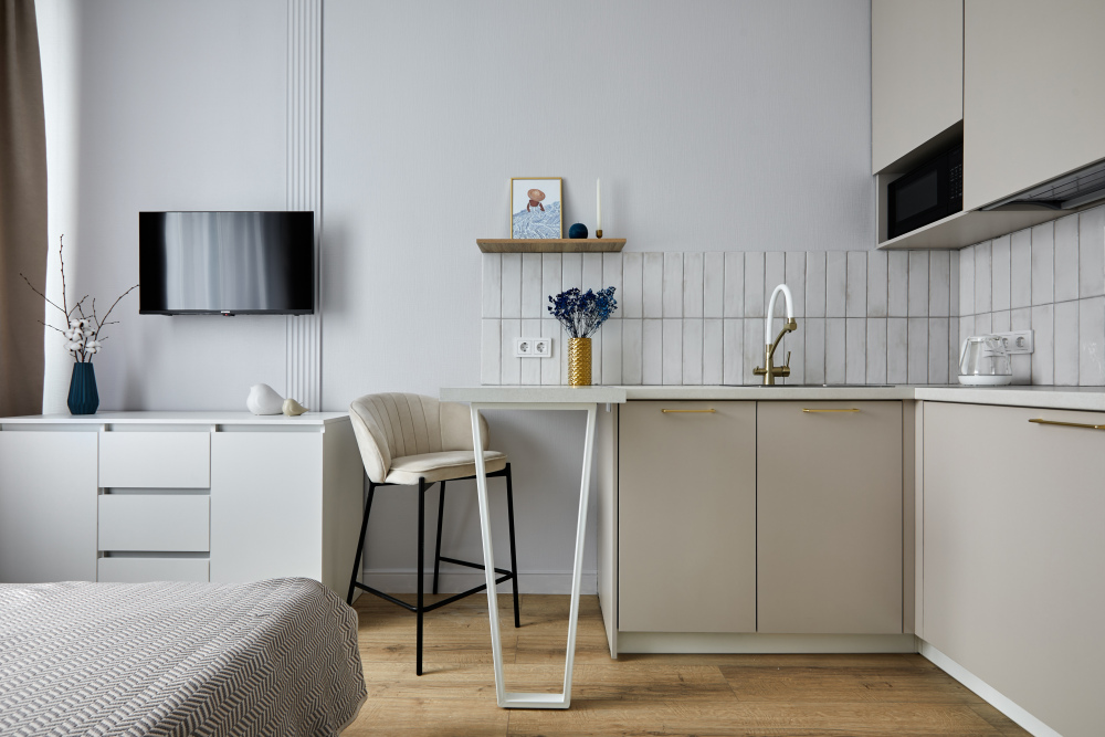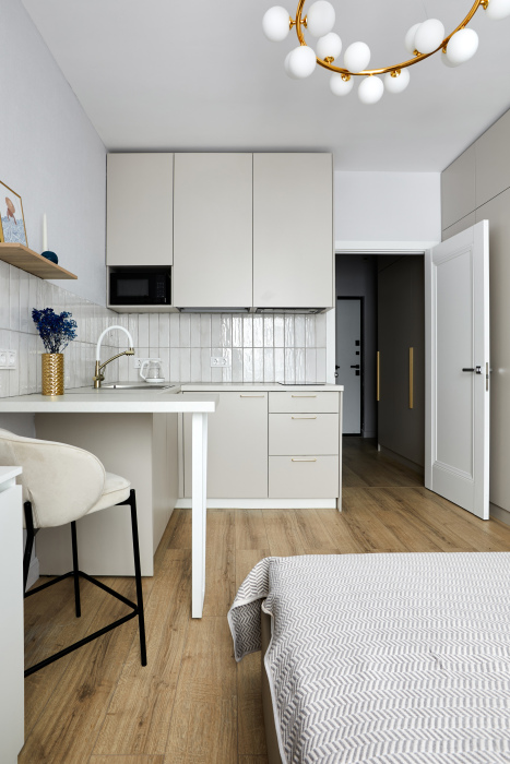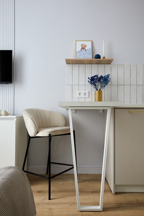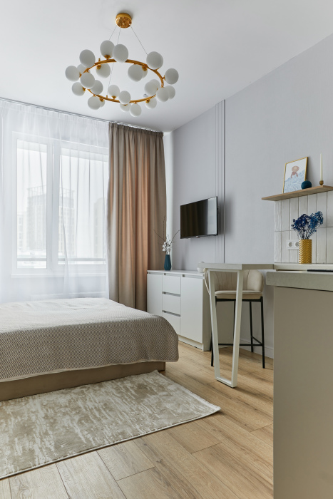 Современная студия в жилом комплексе бизнес-класса «Морская набережная», расположенном в престижной локации Санкт-Петербурга на Васильевском острове.