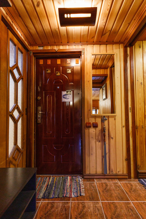 Дом вмещает в себя до 8 гостей, построен в 2020 году по индивидуальному проекту «Свой дом» и представляет собой авторскую отделку апартаментов с 3 большими спальнями на 1 и 2 этаже и большим бар-холлом на 1 этаже.