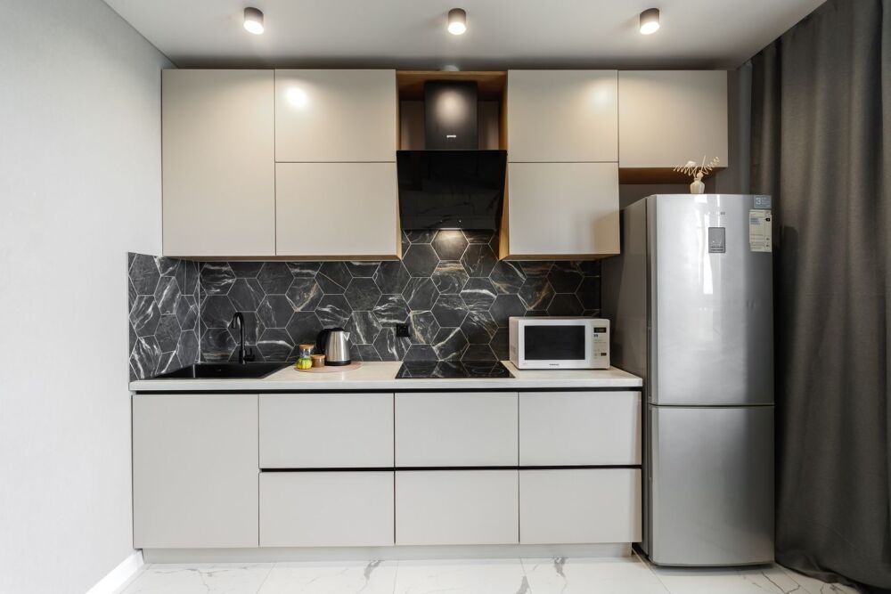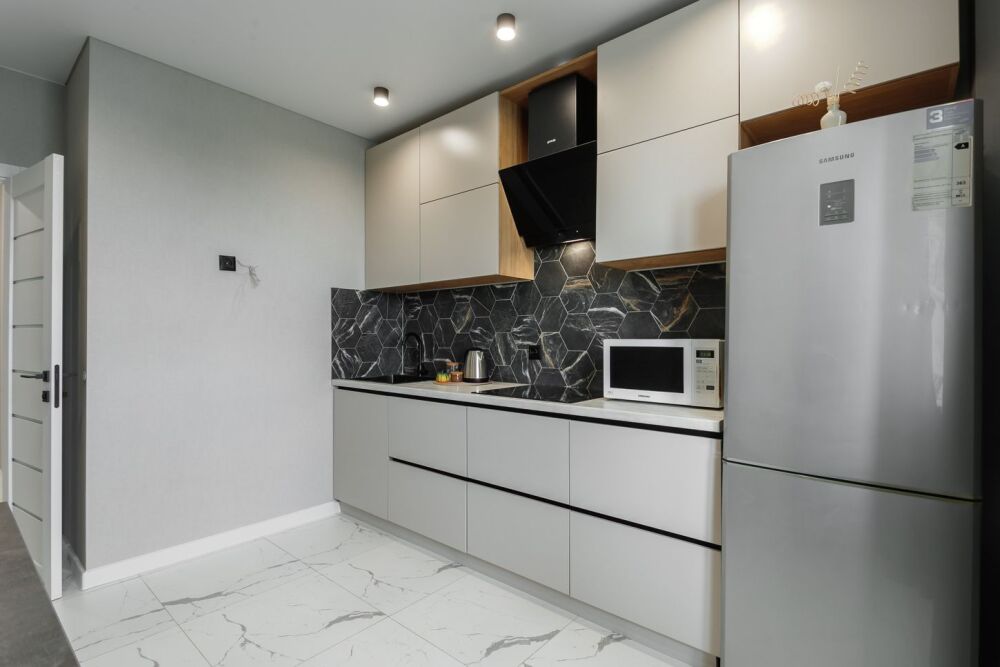 - Полностью оборудованная кухня с необходимой техникой и посудой.