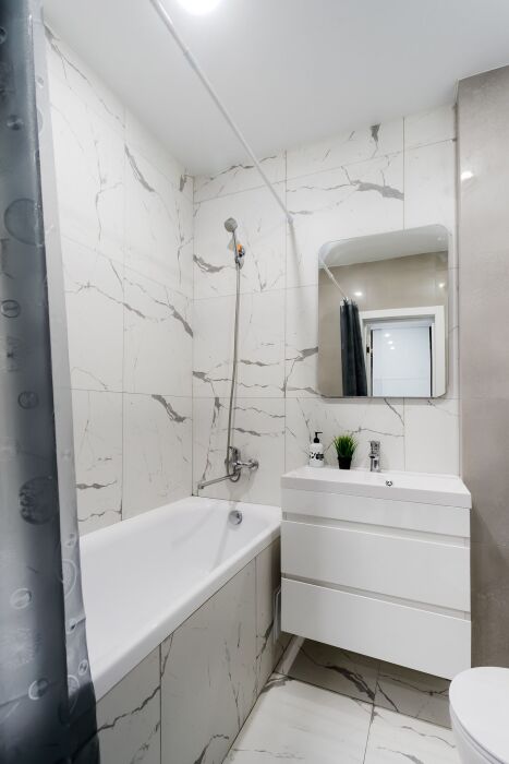 - Просторная квартира с комфортной кроватью.