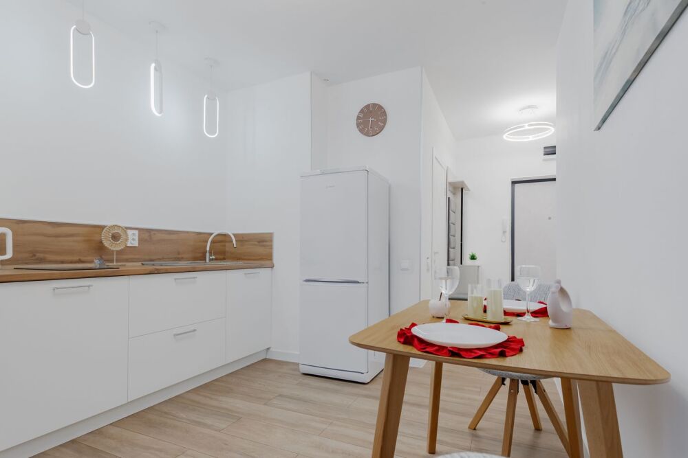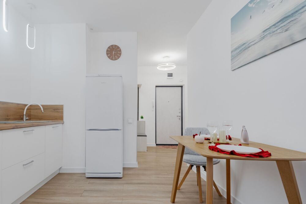 - Полностью оборудованная кухня с необходимой техникой и посудой.