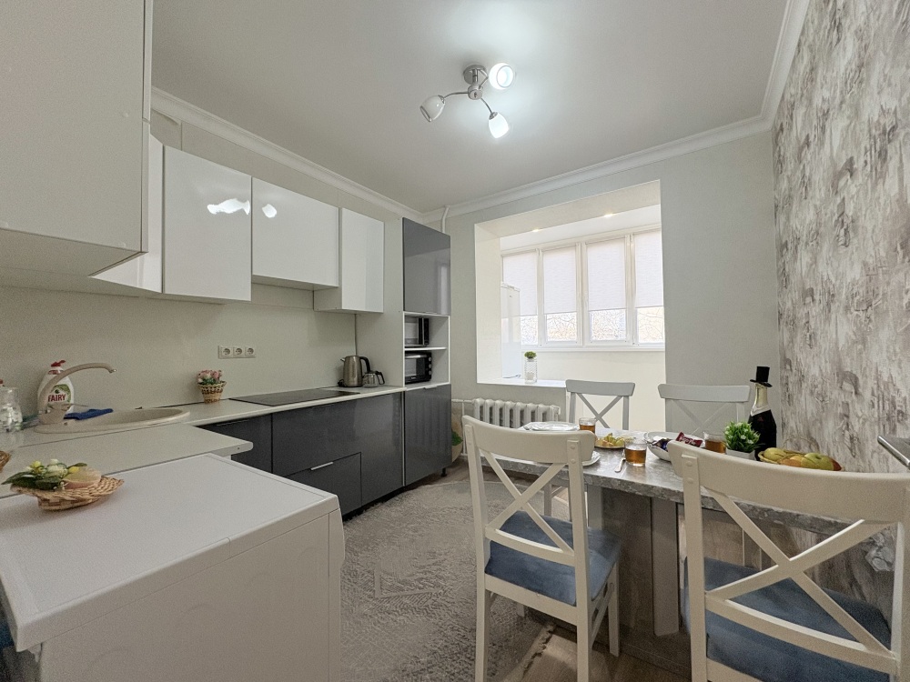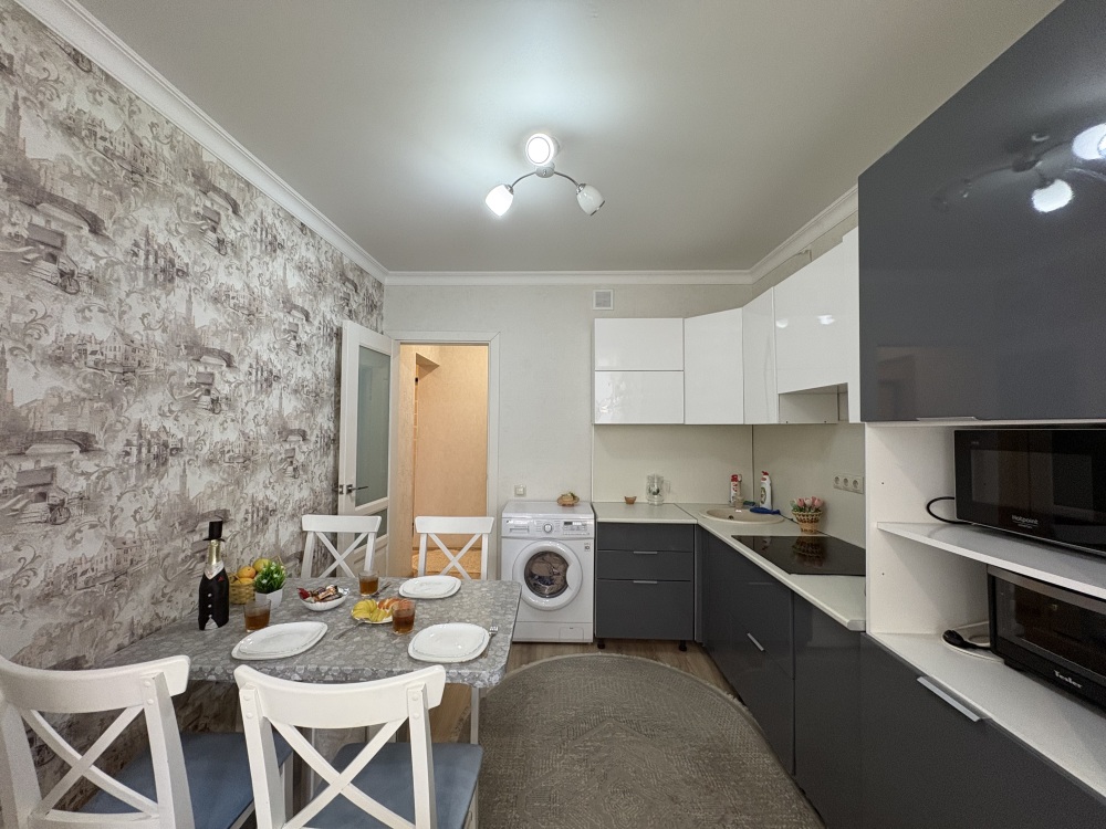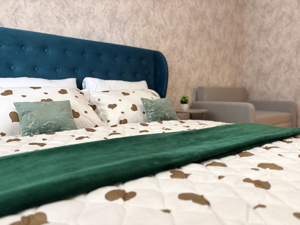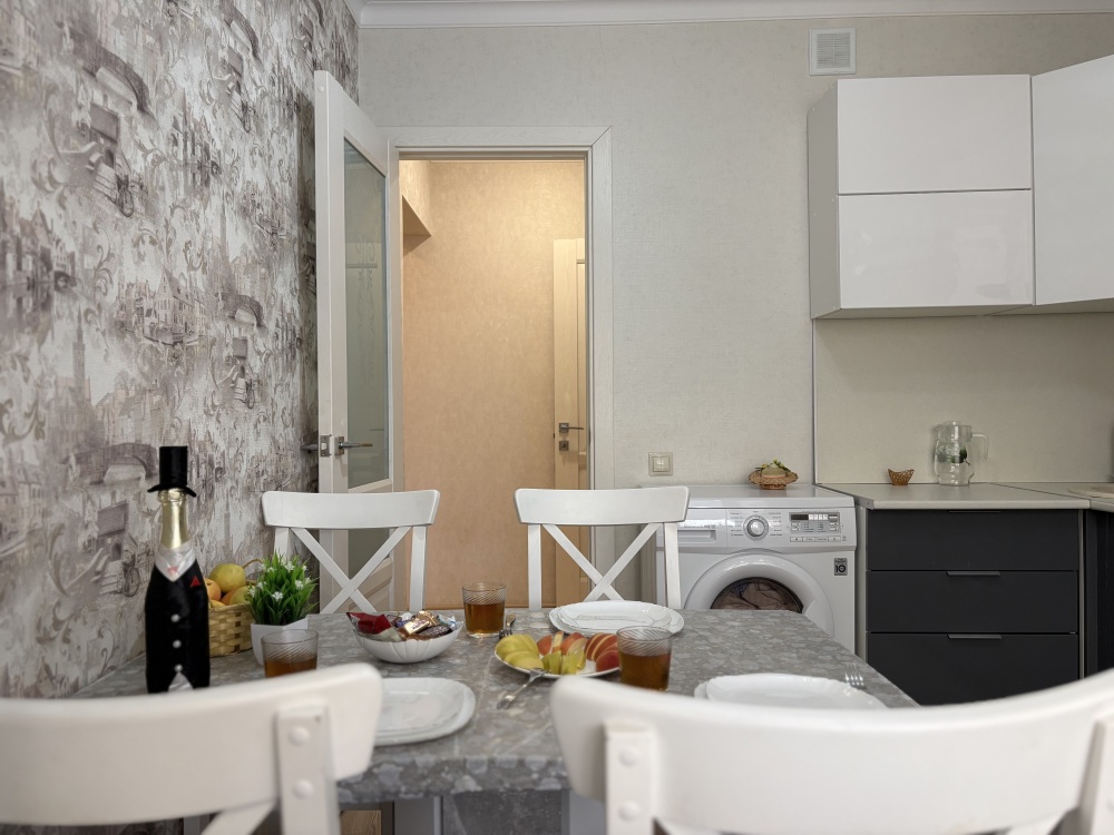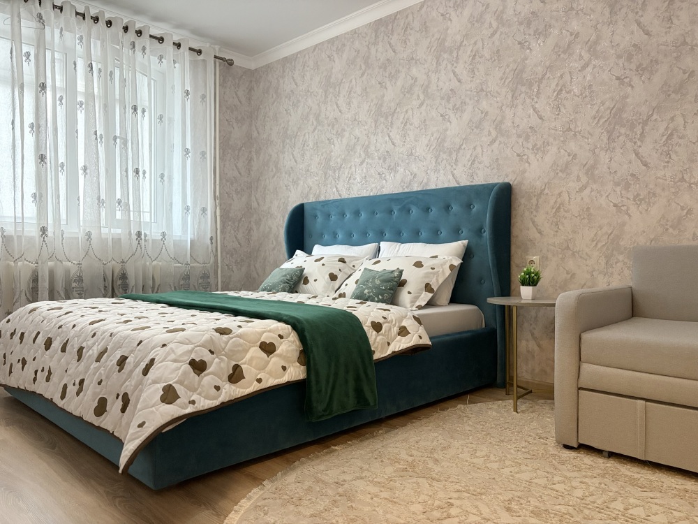 Данная квартира отлично подходит для проживания большой семьи, компании командированных сотрудников и романтичных пар.