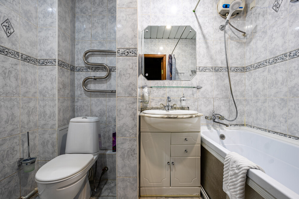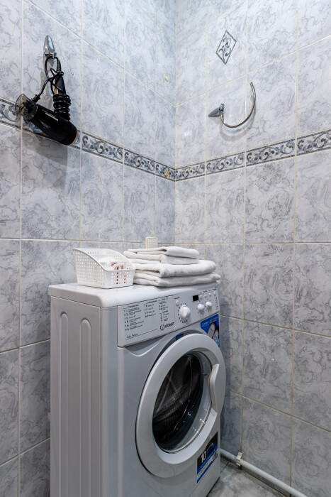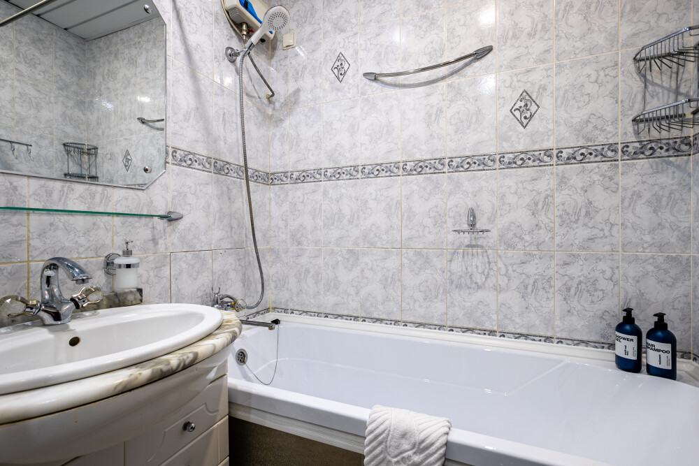 Ванная: Полноценная ванна, косметические принадлежности, фен.