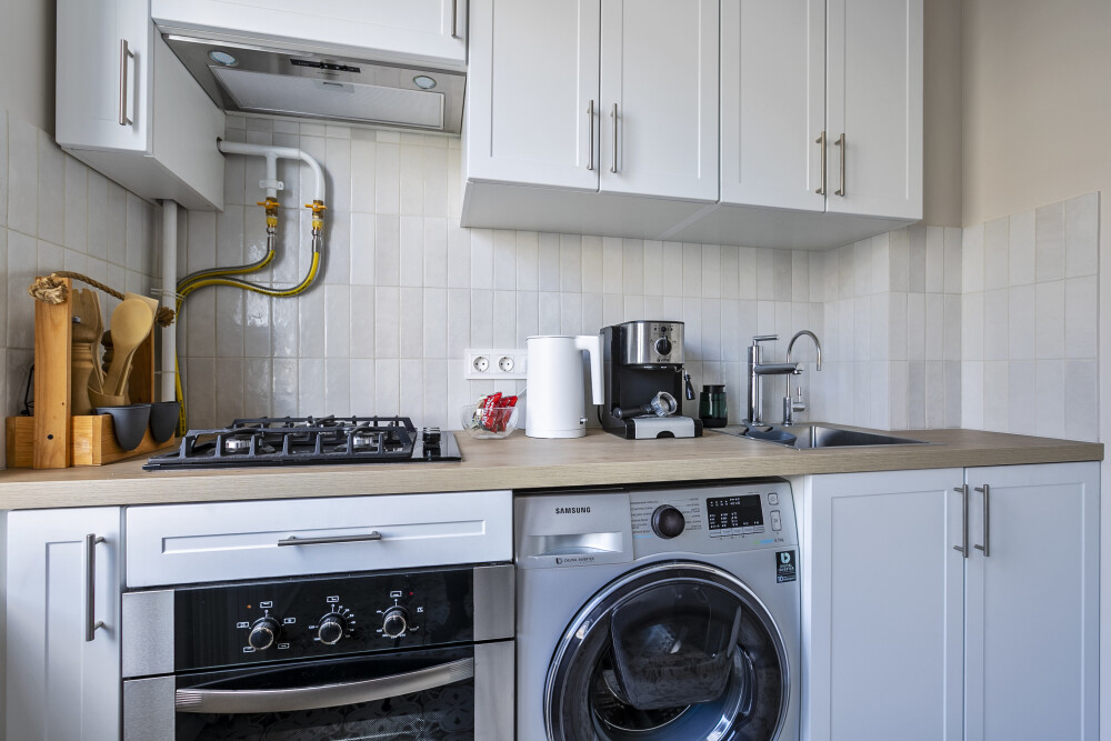 - различные бытовые мелочи: высокоскоростной Wi-Fi, душевая кабина, стиральная машина, фен, утюг, духовой шкаф, бойлер, полный комплект посуды.