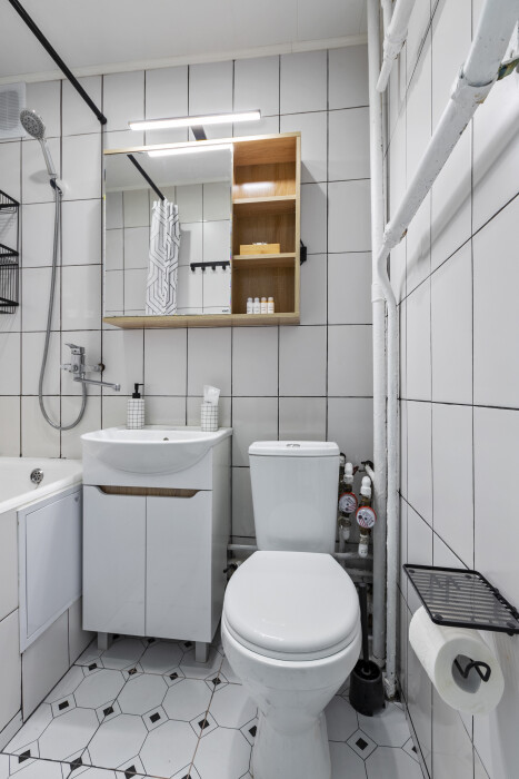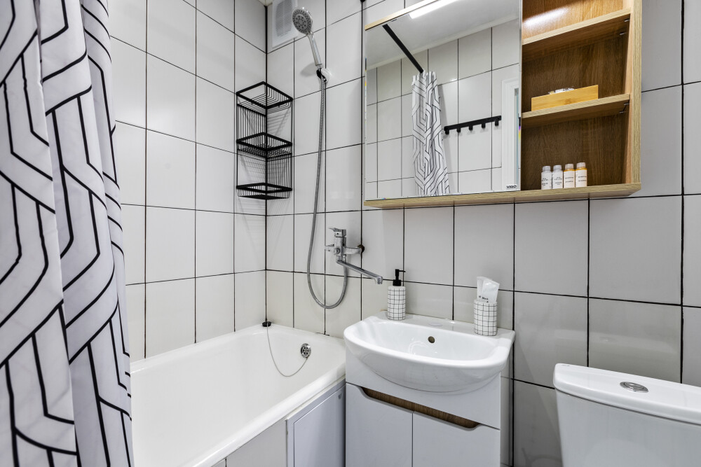 В квартире есть все необходимое, для размещения 4 человек и даже больше: высокоскоростной Wi-F, ванна, стиральная машина, фен, утюг, электрический духовой шкаф, посудомоечная машина, полный комплект посуды, двуспальная кровать, раскладной диван, 2 телевизора и многое другое.