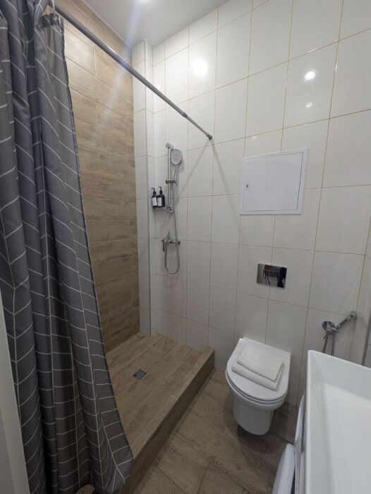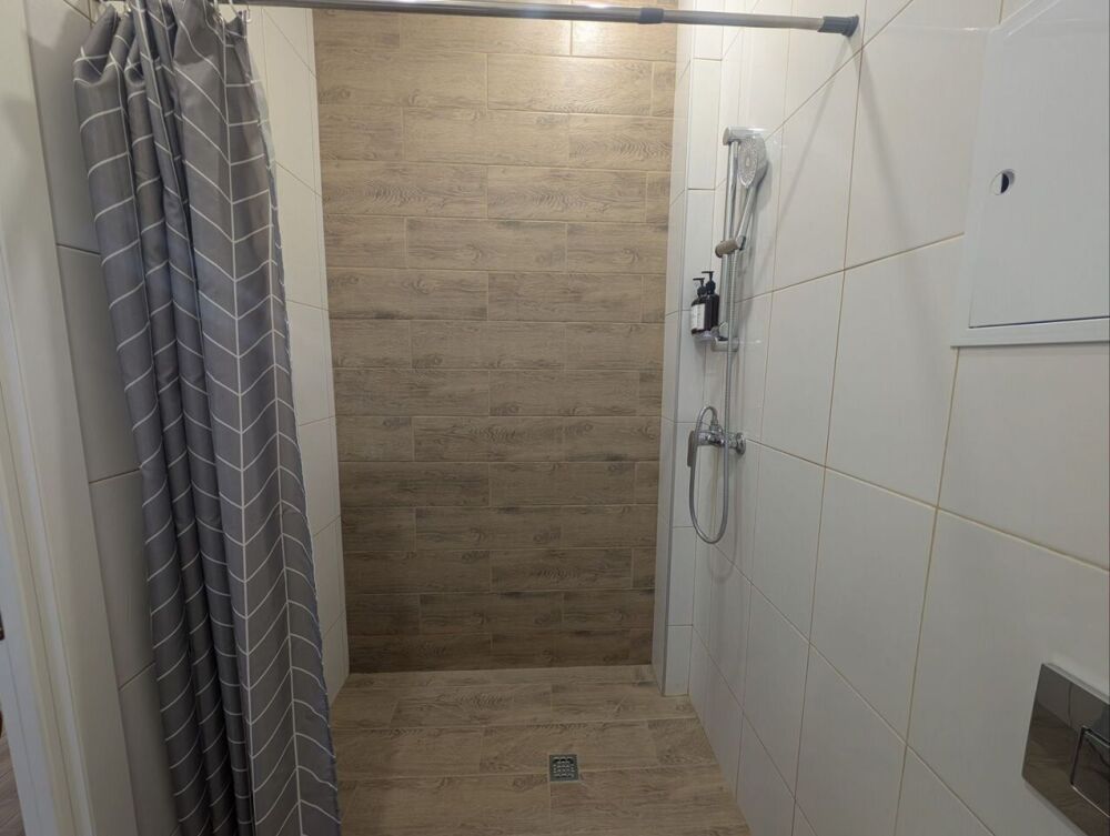 - в просторной ванной комнате вы найдете стиральную машину, фен, шампунь, гель для душа и пушистые полотенца! Душевая оснащена бойлером для бесперебойной подачи горячей воды при отключении летом!