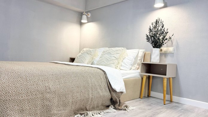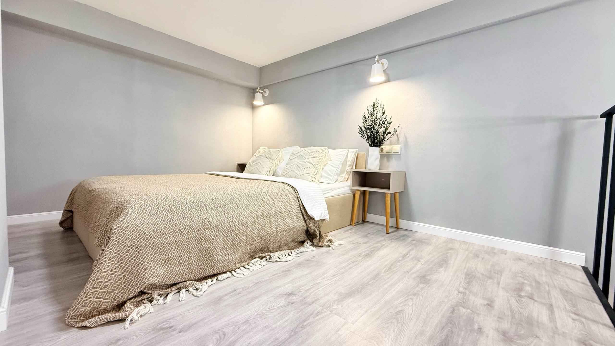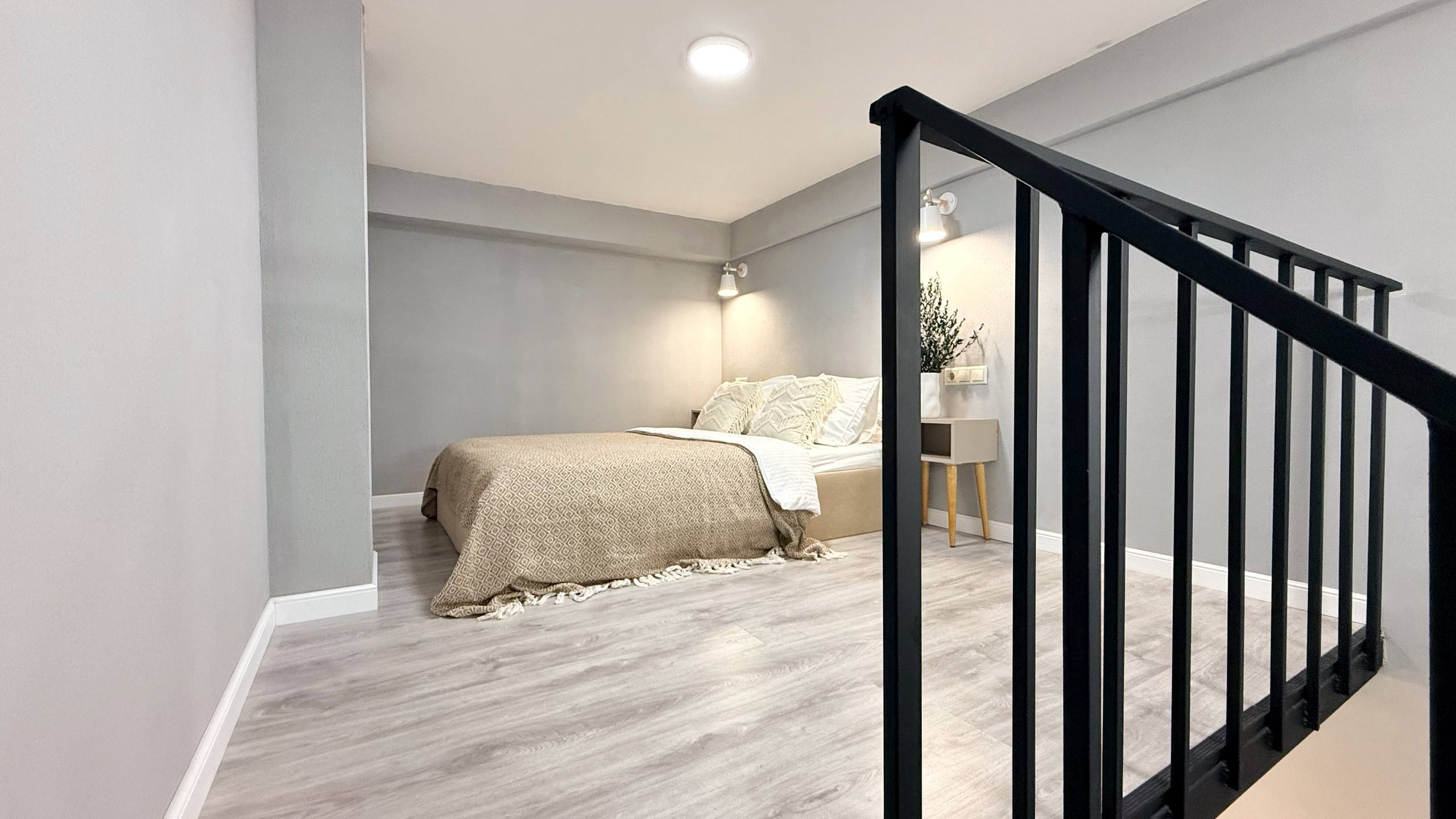 Второй уровень - Ваша спальня с большой кроватью и ортопедическим матрасом. Спите высоко, с премиум-бельем и ощущением уюта.