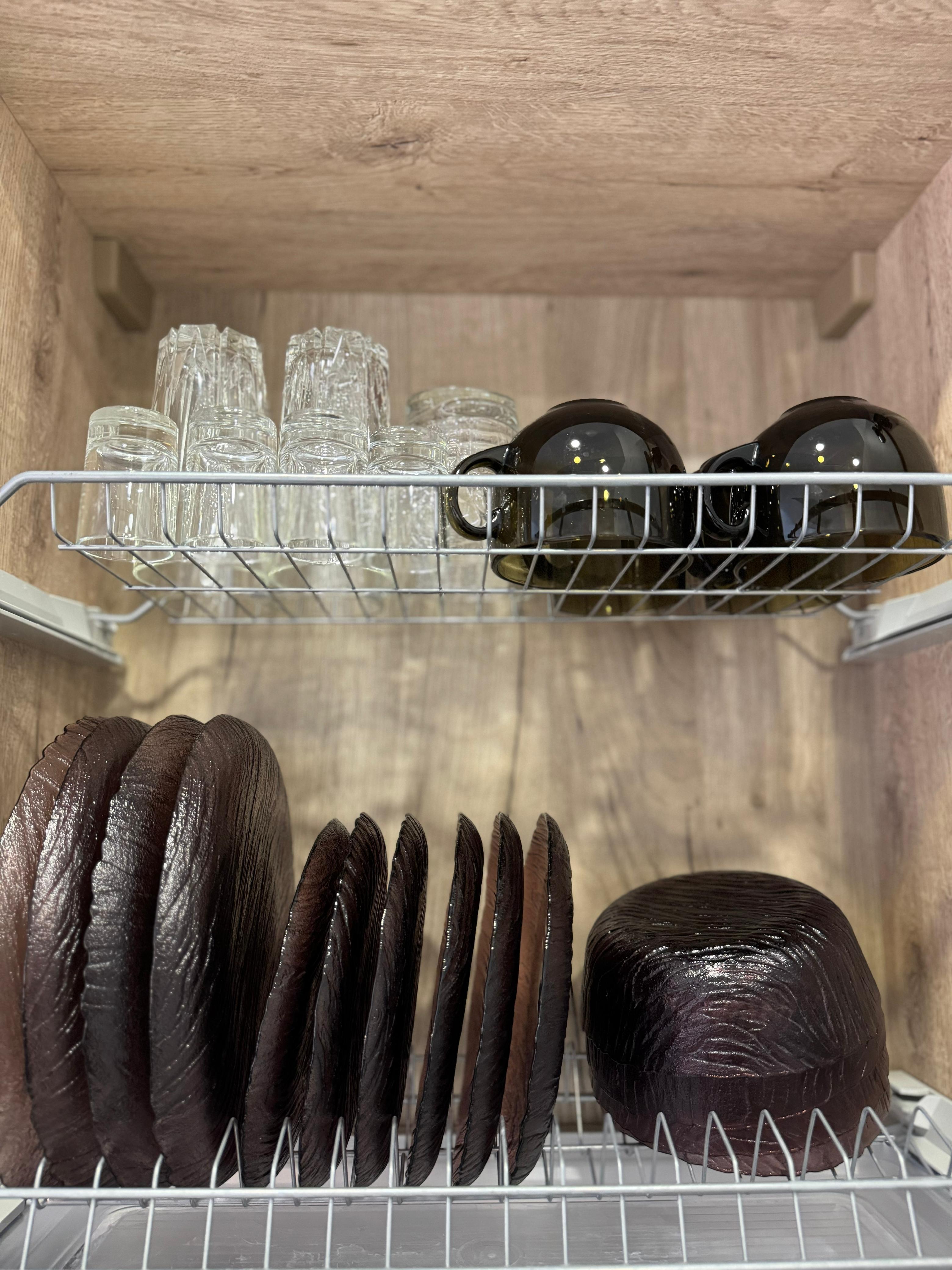 - Полным набором посуды и приборов.