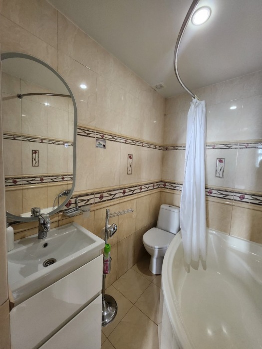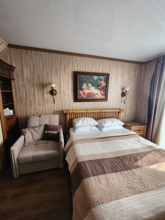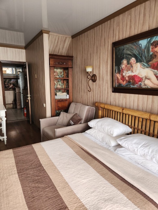 Двуспальная кровать, Smart TV телевизор, Wi-Fi, полностью оборудованная кухня: плита, чайник, холодильник, вся необходимая посуда и принадлежности. Стиральная машина, утюг, фен. Чистое постельное бельё.