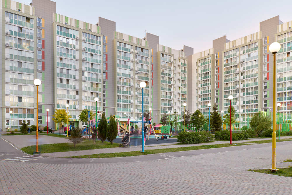 Стильные высотки, яркие детские и спортивные площадки, закрытый двор без машин.