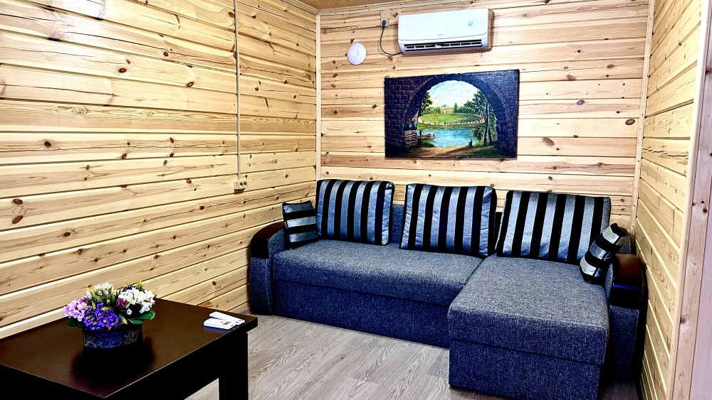 В коттедже имеется собственный мангал полностью оборудованная кухня, гостиная, санузел двух этажах, на втором этаже две спальни в Белоснежное бельем, в каждой комнате сплит система, телевизор. Высокоскоростной интернет.