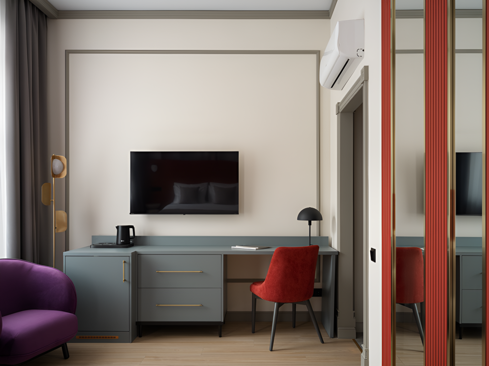 Также в номере жк телевизор с доступом к онлайн-кинотеатру и сотнями каналов, прямой телефон, вместительный сейф для ценных вещей и компактный мини-холодильник.