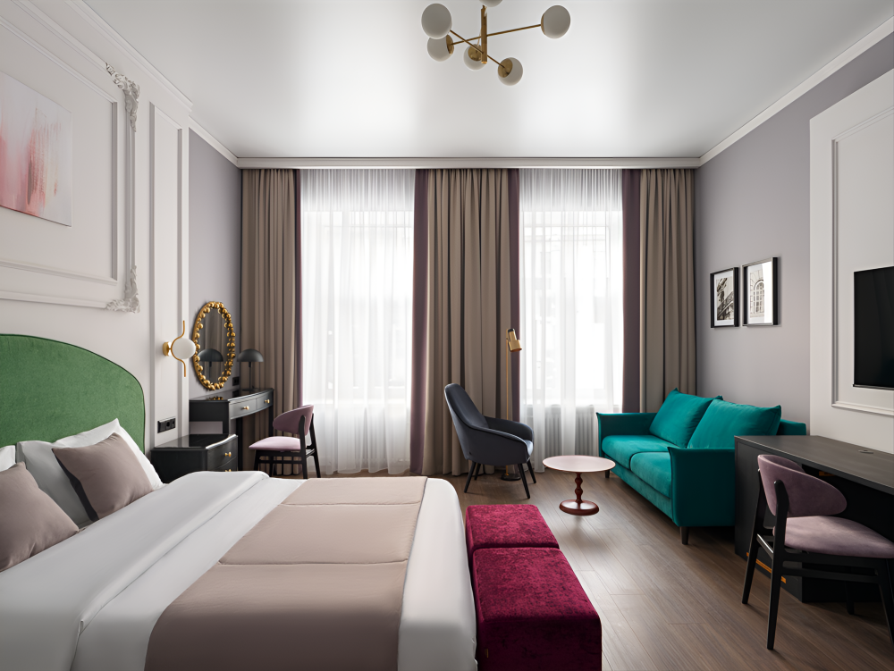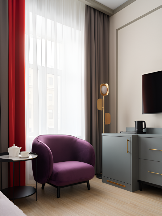 В номерах данной категории также есть жк телевизор с доступом к онлайн-кинотеатру и сотнями каналов, прямой телефон, вместительный сейф для ценных вещей и компактный мини-холодильник.