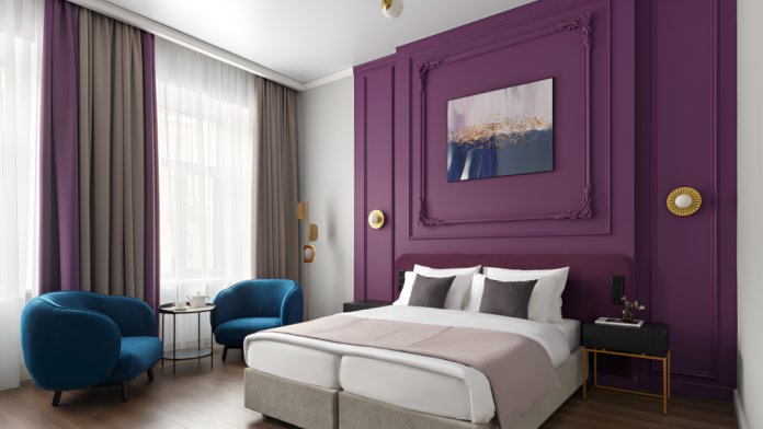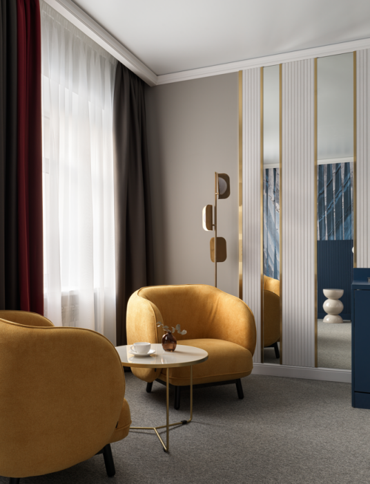 Полулюкс Роял — площадью 35 квадратных метров, расположен 2 этаже отеля. Номер с панорамным видом на город.