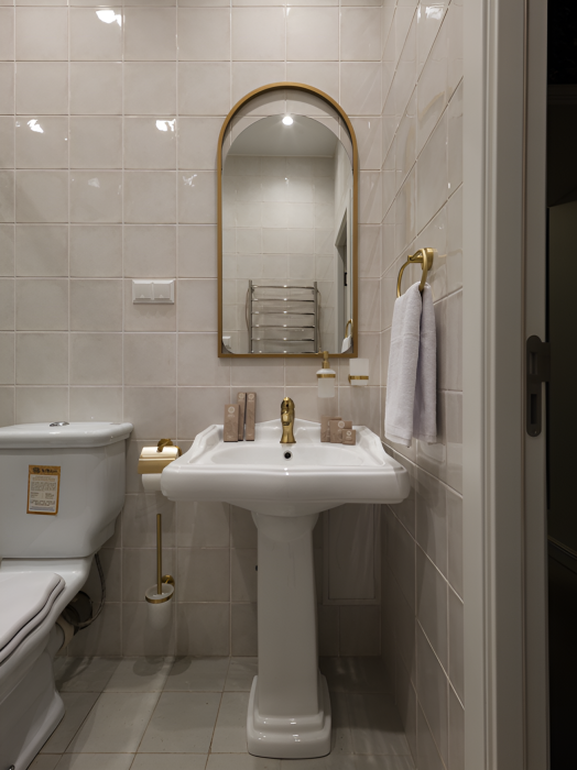 Собственная ванная комната оснащена душевой кабиной. В номере мягкие халаты, набор качественных косметических принадлежностей и фен.