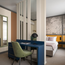 Отель «Innостранец» расположен в тихом квартале исторического центра города. Здесь вы окажетесь в самом сердце культурной жизни, сохраняя при этом ощущение уединения, покоя и защищённости от городской суеты. Небольшое количество номеров создаёт камерную, почти домашнюю атмосферу. В отеле всего 14 уникальных дизайнерских номеров. Они объединены общей концепцией, но каждый обладает собственной стилистикой, настроением и характером — чтобы каждый гость мог найти пространство, которое откликается именно ему.