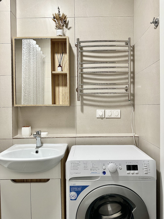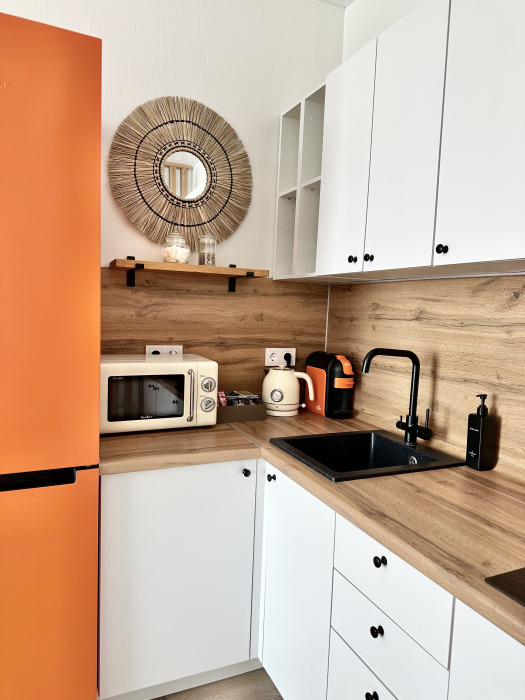 В наших апартаментах есть все необходимое для комфортного проживания: кондиционер, холодильник, варочная панель, СВЧ-печь, чайник, кофеварка, разнообразная посуда, пылесос, стиральная машина, фен, утюг и не только. Два больших телевизора 55 дюймов со СМАРТ-ТВ.