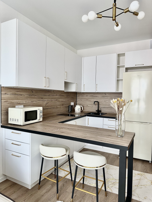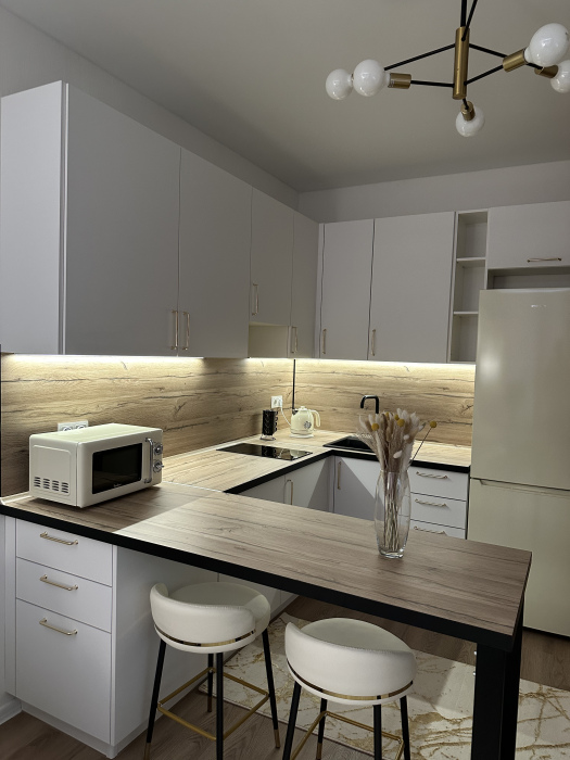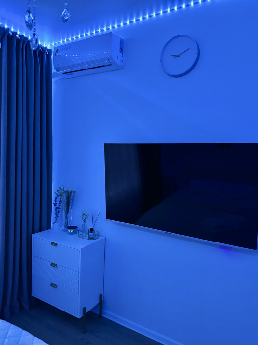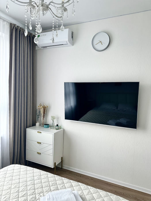 В апартаментах есть все необходимое для комфортного проживания: кондиционер, холодильник, варочная панель, СВЧ-печь, чайник, кофеварка, разнообразная посуда, пылесос, стиральная машина, фен, утюг и не только. Два больших телевизора 55 дюймов со СМАРТ-ТВ.