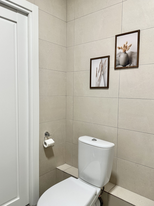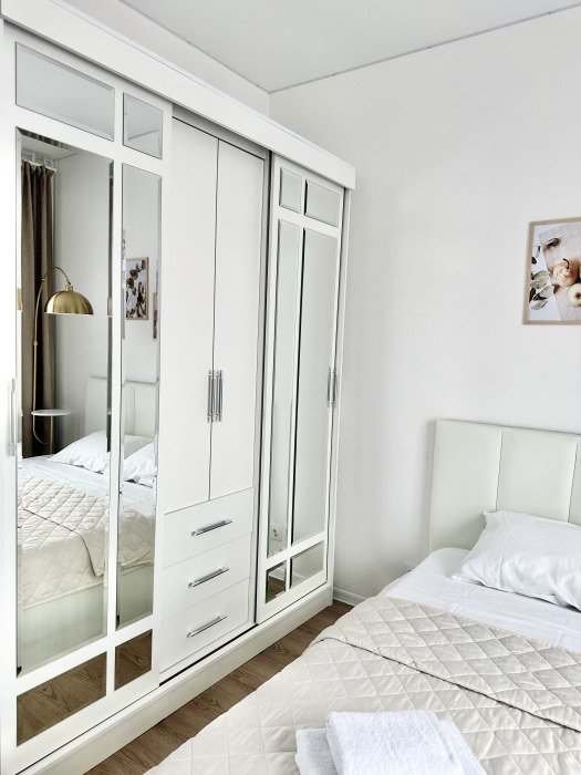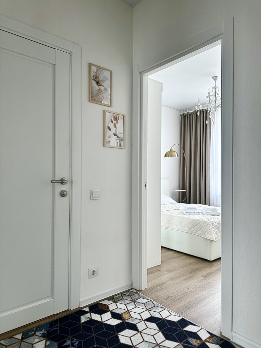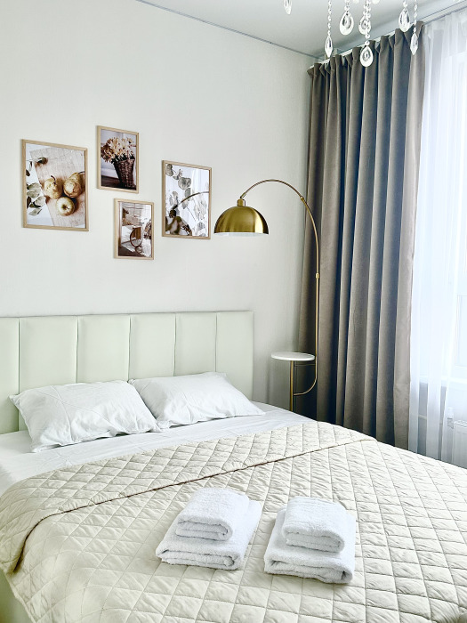 Спальня с большой двухспальной кроватью (спальное место 160 см), вместительным шкафом для одежды. Гостям предоставляется постельное белье, полотенца, а также средства гигиены - мыло, шампунь. Санузел с ванной, раковиной, унитазом, стиральной машиной и 2 шкафчиками. Проведён высокоскоростной интернет, есть Wi-Fi.
