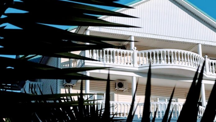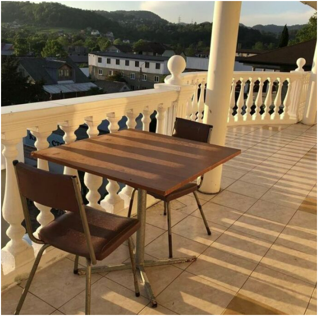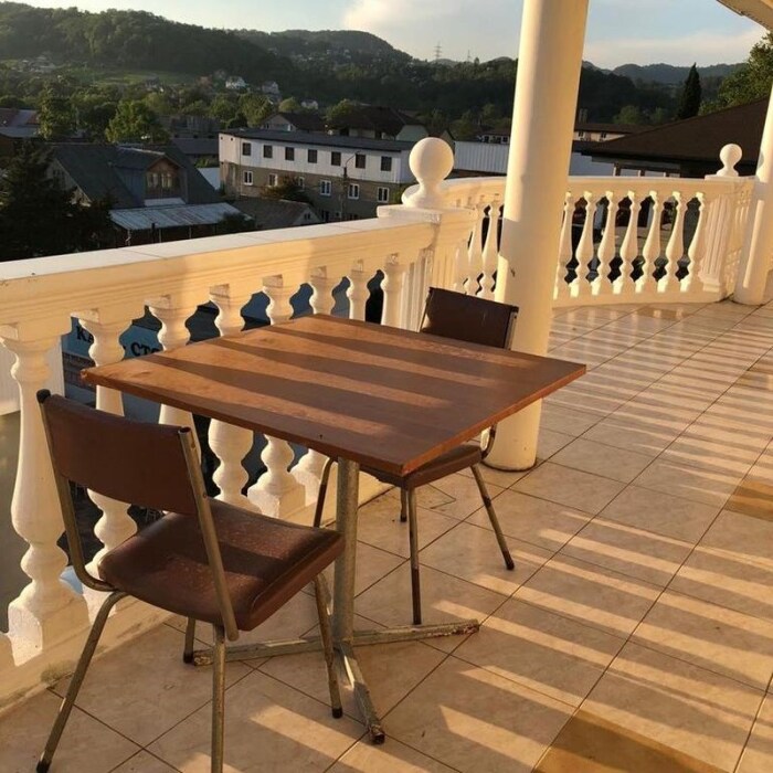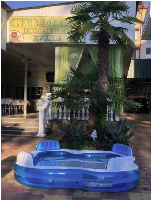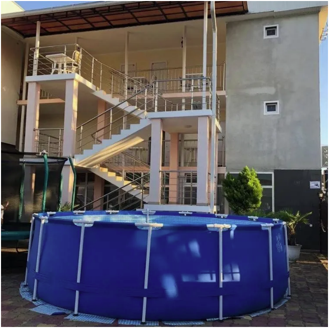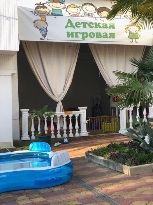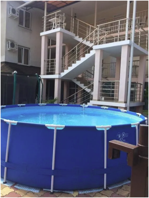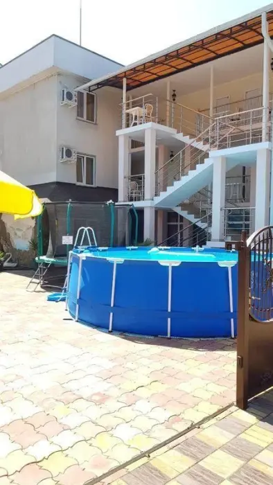 Гостевой дом имеет свою закрытую территорию с парковкой, зелёной зоной, мангалом, беседкой для отдыха, детской игровой зоной, бассейном, кафе-столовой и пекарней.