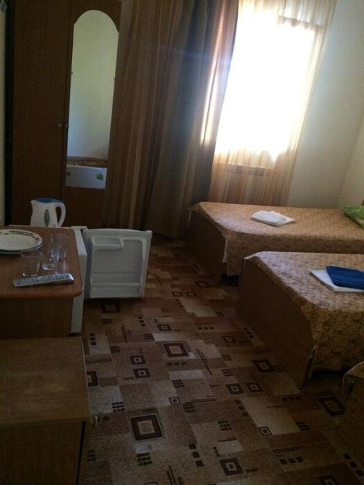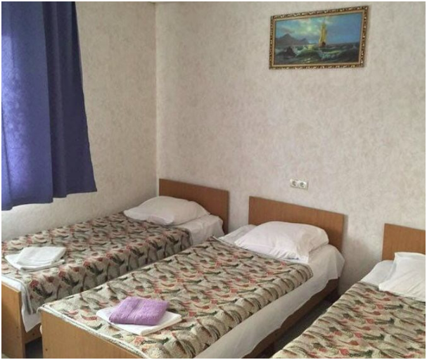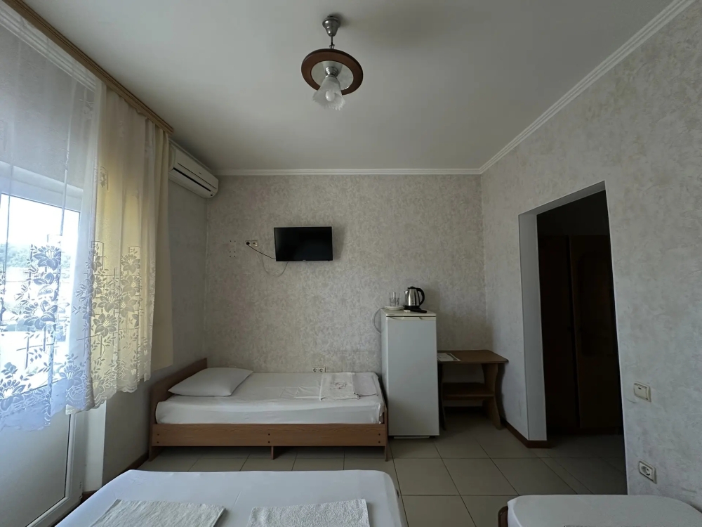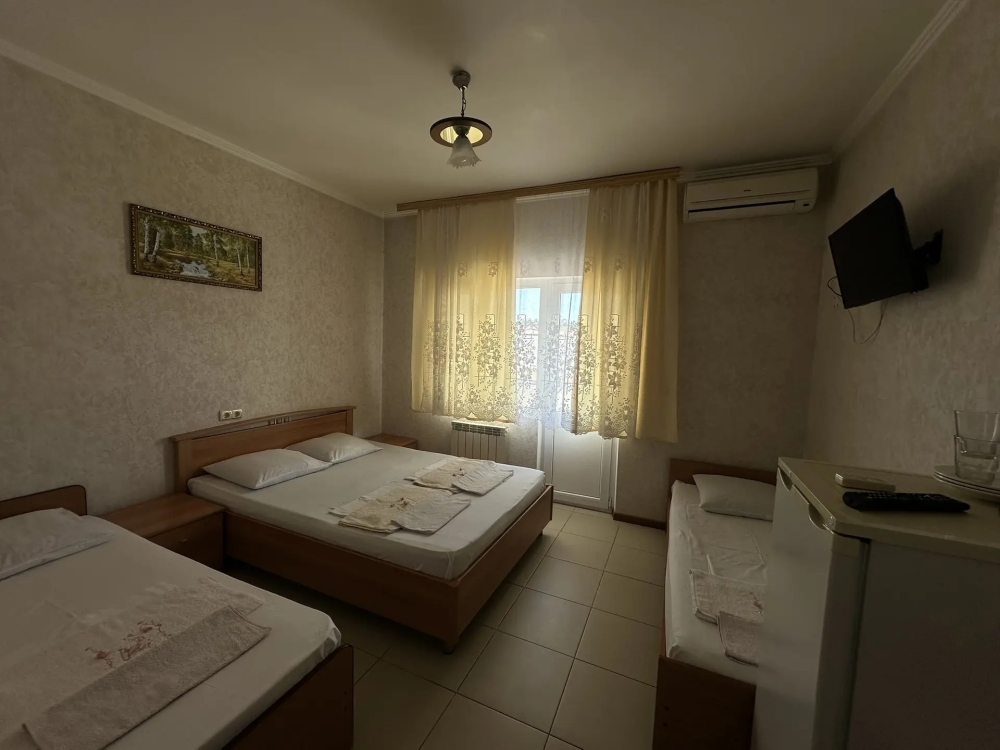 Номер с тремя 1.5 спальными кроватями, кондиционер, холодильник, телевизор, удобства в номере. Номера с балконом.