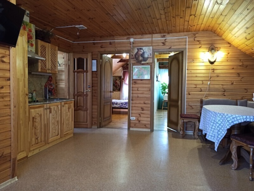 В нашем доме имеются 2 номера. Первый этаж 65м. В него входят кухня 17м. Две раздельные комнаты и санузел.