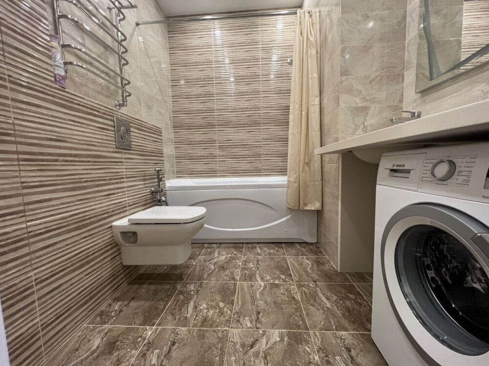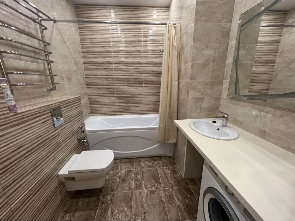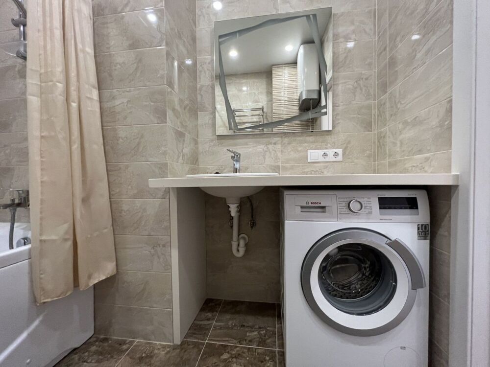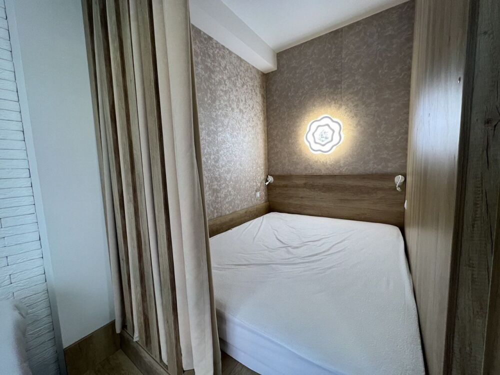 В спальне большая кровать, в гостиной один диван. Современный ремонт. Установлена мебель и вся необходимая бытовая техника от крупной до мелкой. Квартира полностью укомплектована посудой, текстилем и всем необходимым. Всё в отличном состоянии.