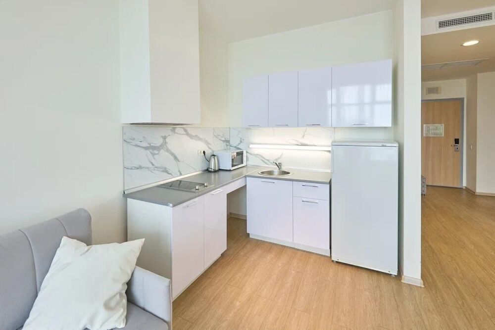 - Полностью укомплектованная мебелью и посудой кухня;