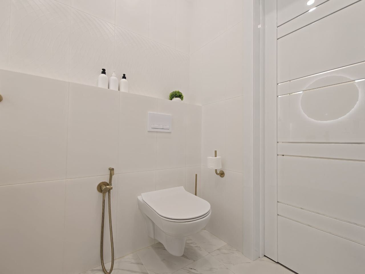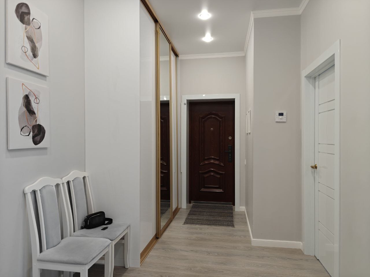 Современная техника: Smart-TV с интернет-подключением, кондиционер, стиральная машина, бытовые устройства (пылесос, утюг, гладильная доска, фен).
