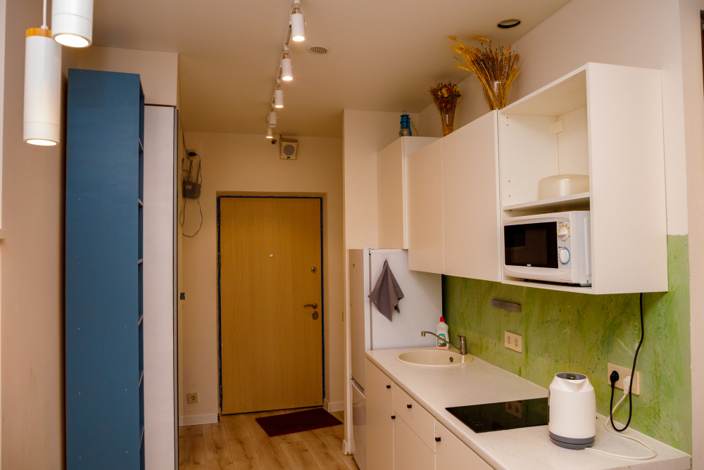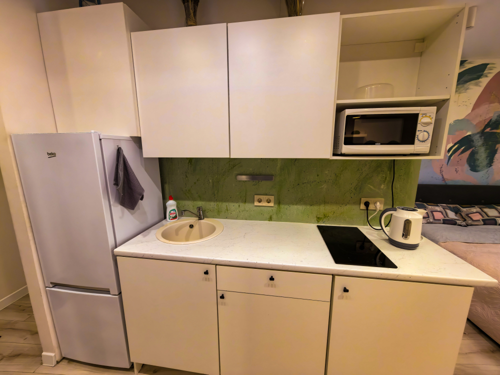 - Холодильник, плита, микроволновая печь, чайник, стиральная машина