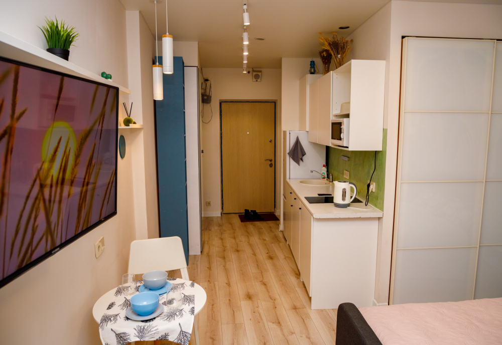 - Оплата по факту заселения, предоплата за бронь — 2000. Эта же сумма является залогом, который возвращается в день отъезда, после уборки квартиры, если правила проживания не были нарушены.