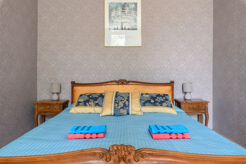 - 8 спальных мест. Дети до 3 лет могут спать с родителями без отдельного места. 3 двухспальные кровати и большой двухспальный диван.