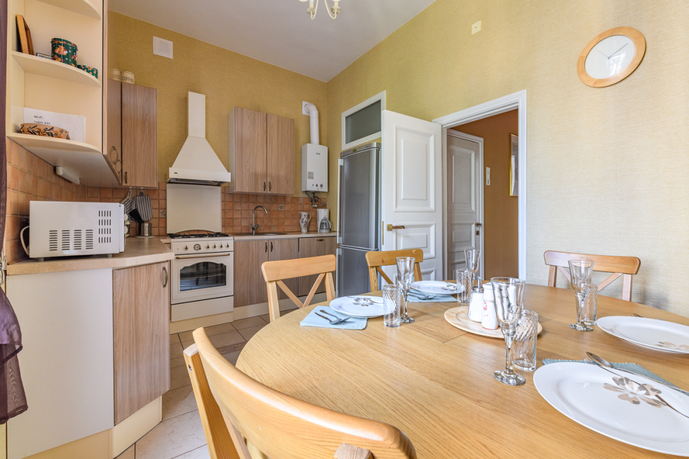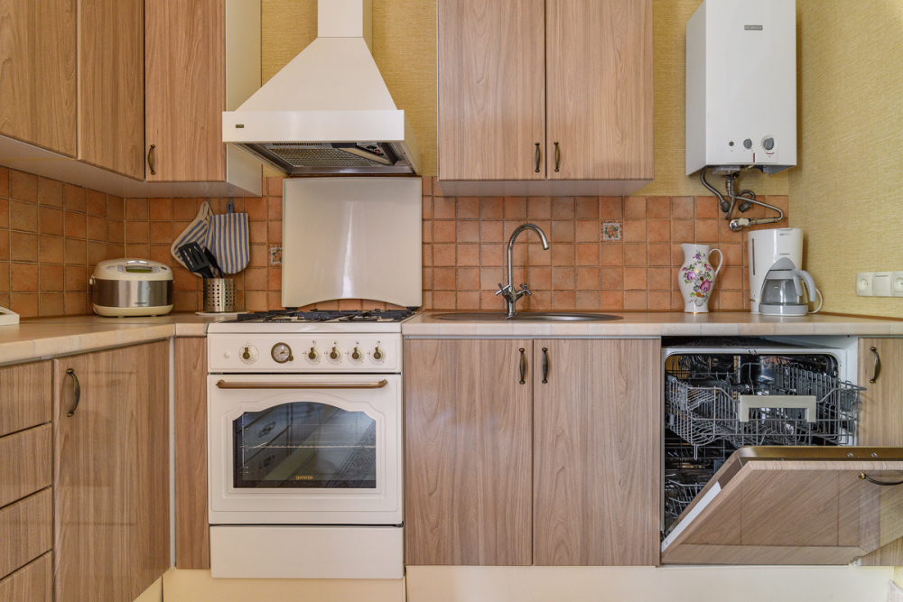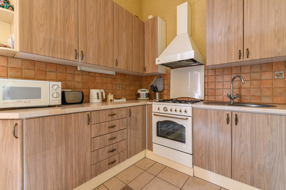 - Холодильник, газовая плита, духовой шкаф, микроволновая печь, автоматическая кофеварка, чайник, посуда, посудомоечная машина, чистящие средства.