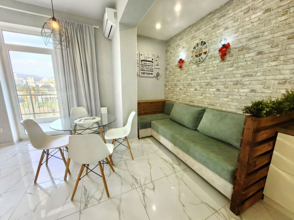 Сеть недвижимости посуточной аренды «ПОГУЛЯЙ в АЛУШТЕ» предлагает отдохнуть в комфортных апартаментах с панорамным остеклением, которые расположены практически на Центральной набережной в элитном доме «Status House». На открытом балкончике с чудесными видами на горы Чатыр Даг и Демерджи, сидя в удобных креслах, Вы можете утром наслаждаться горячим кофе, а вечером встречать закаты с холодным Крымским Шампанским!