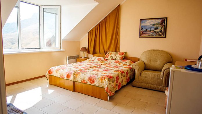 Расположен гостевой дом на окраине города, на границе заповедника Кара-Даг, к морю спуск.