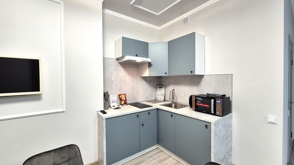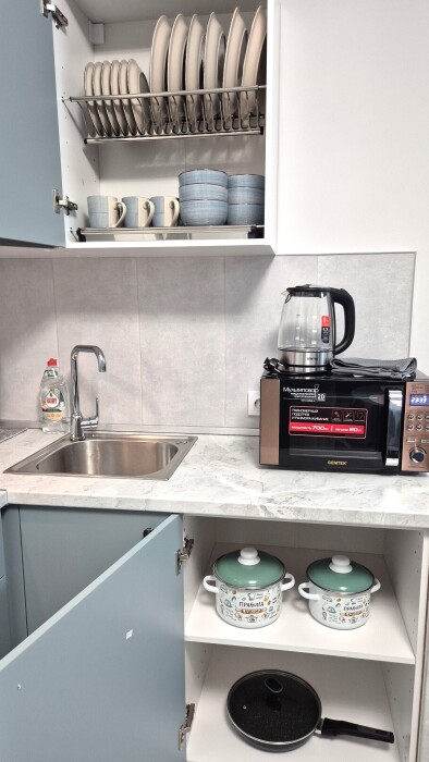 - Холодильник, плита, микроволновая печь, чайник, стиральная машина
