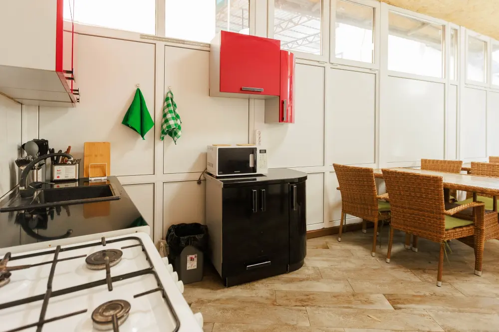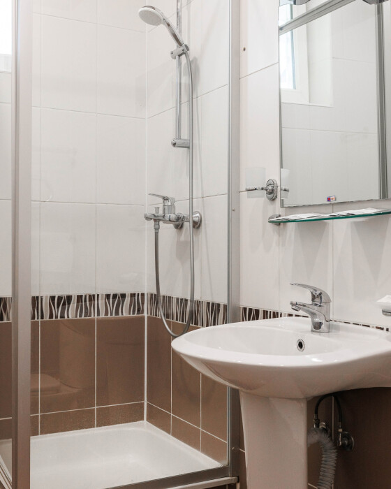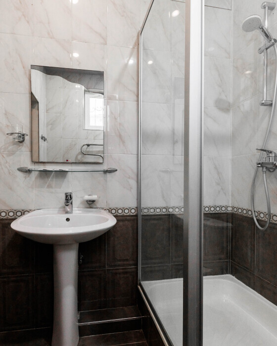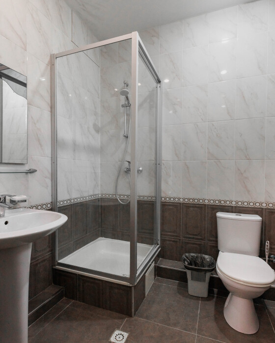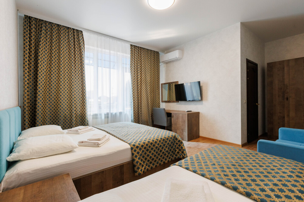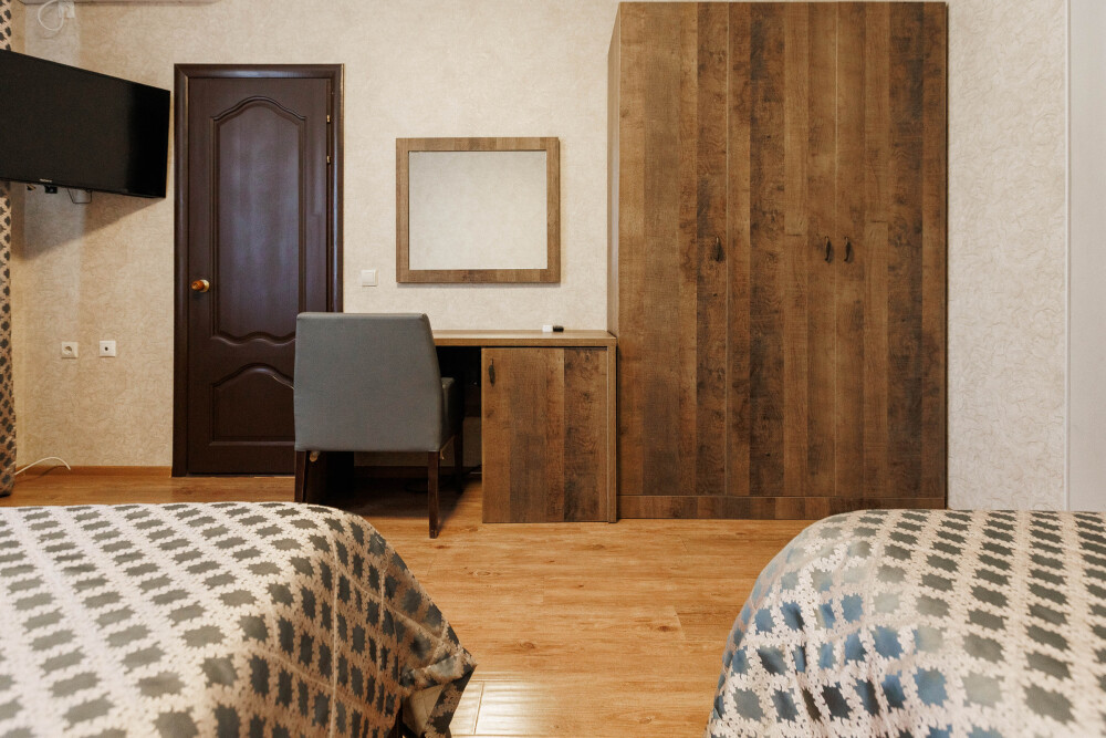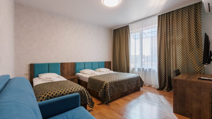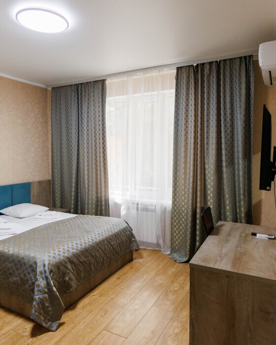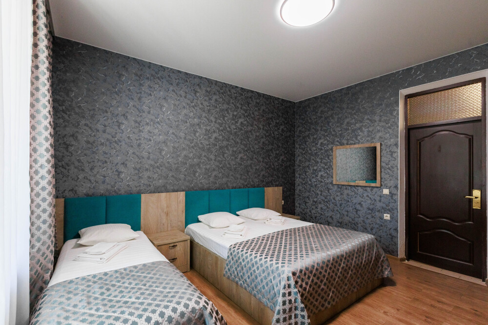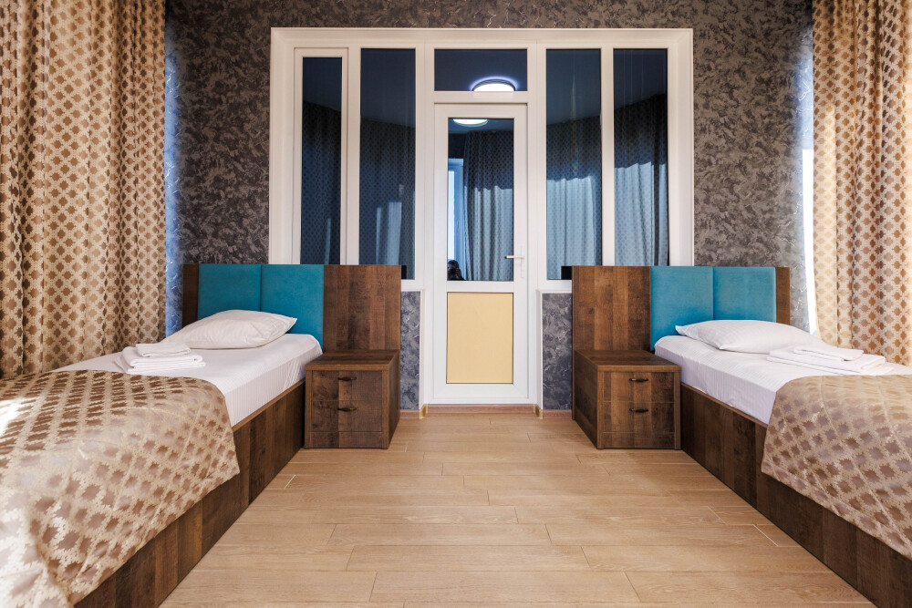 Однокомнатные номера расположены на первом этаже, что обеспечивает удобный доступ без необходимости подниматься по лестнице.