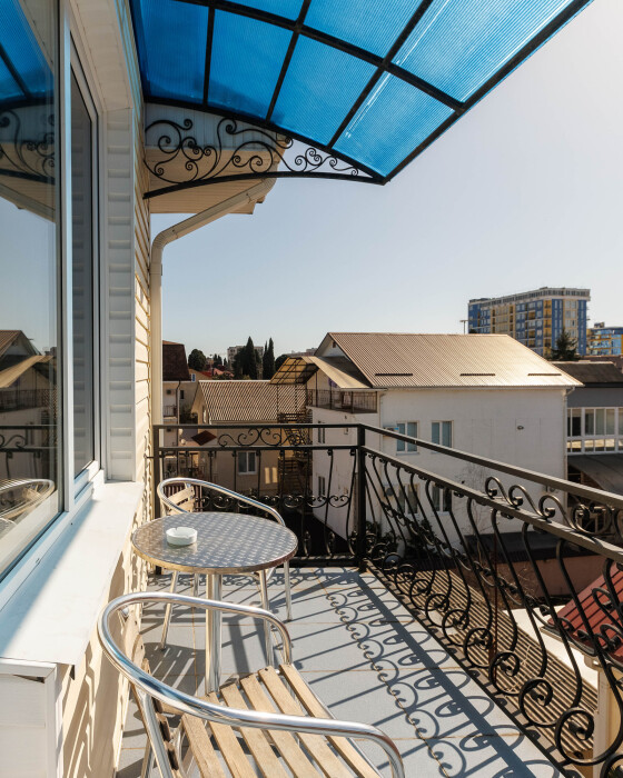В номерах данной категории имеется балкон с уличной мебелью, на котором можно насладиться морским воздухом.