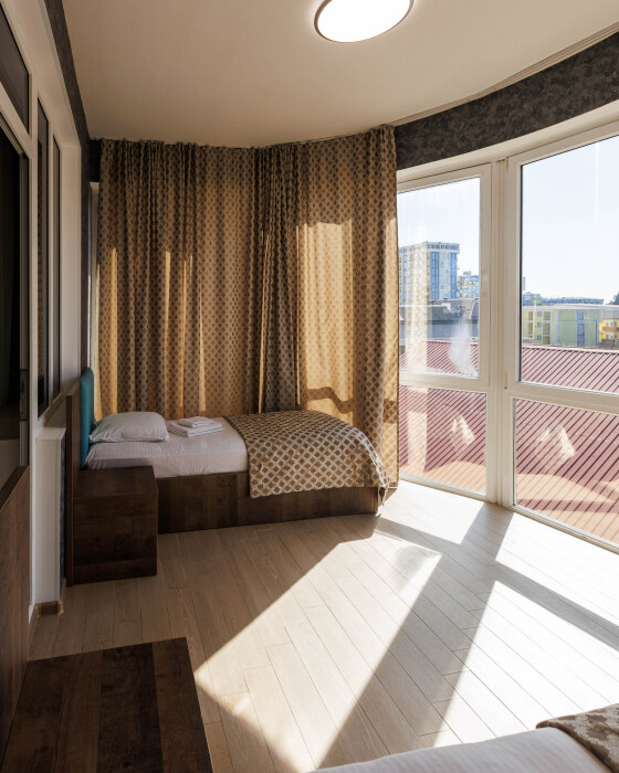 В номерах данной категории имеется просторный эркер с витражными окнами, который наполнен солнцем и светом.