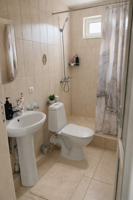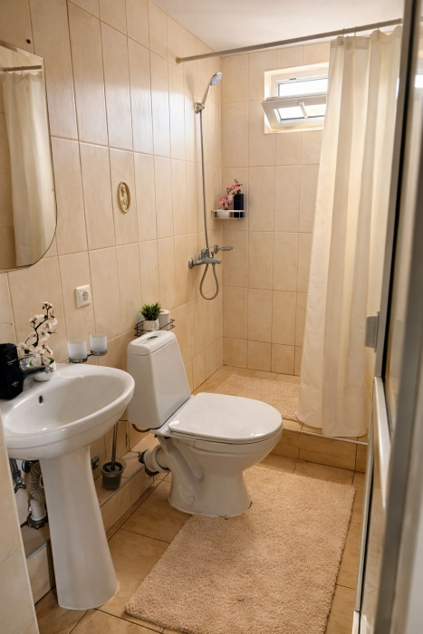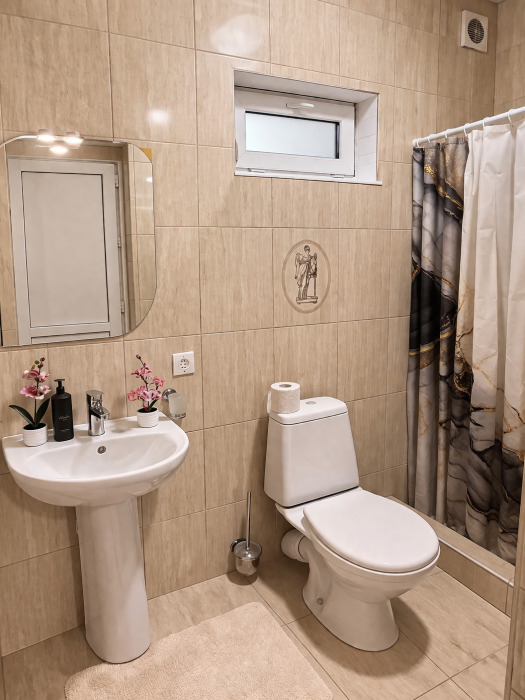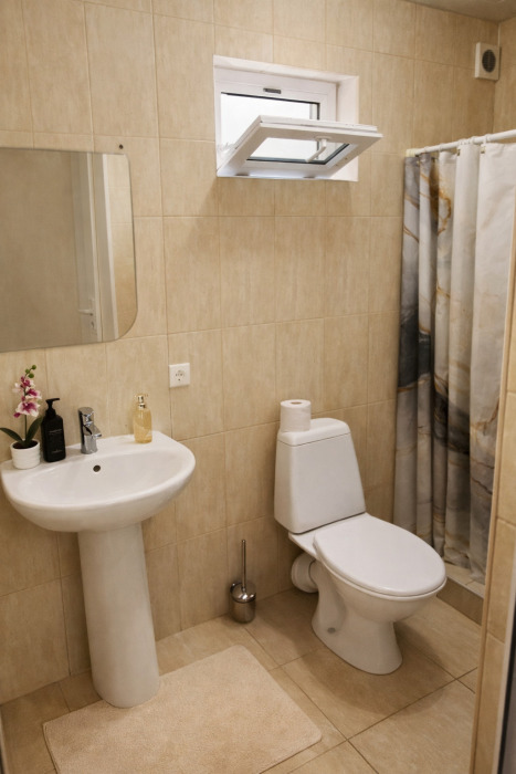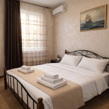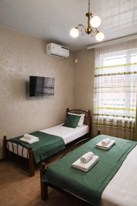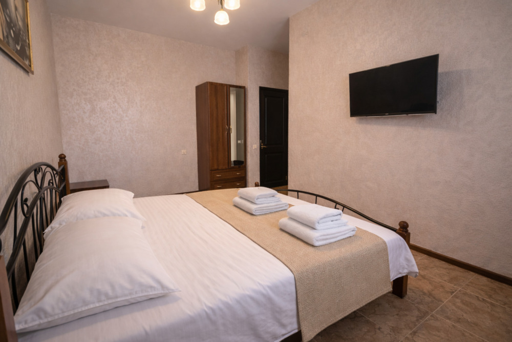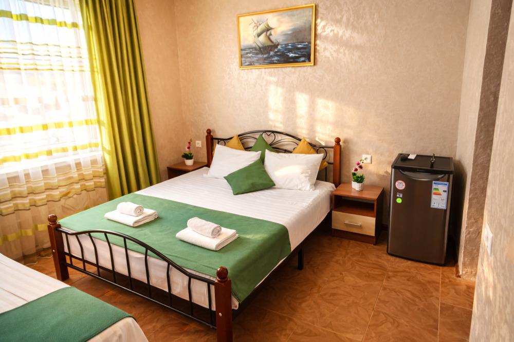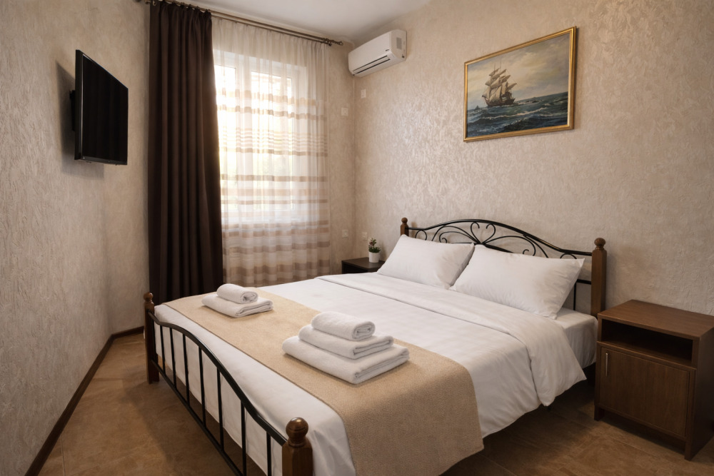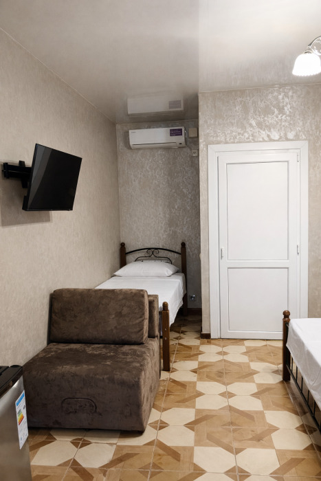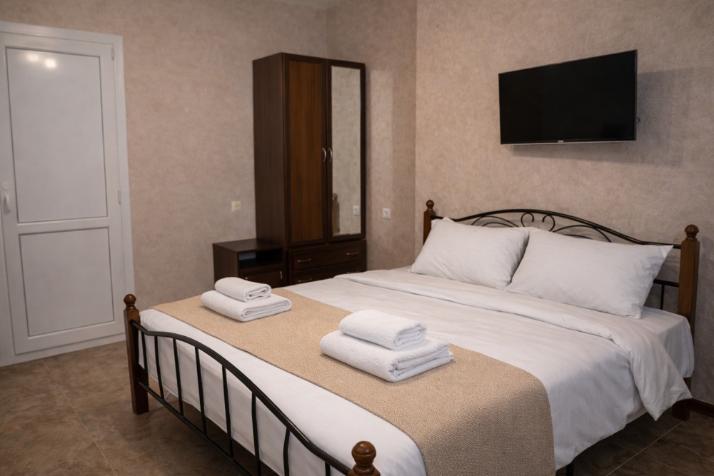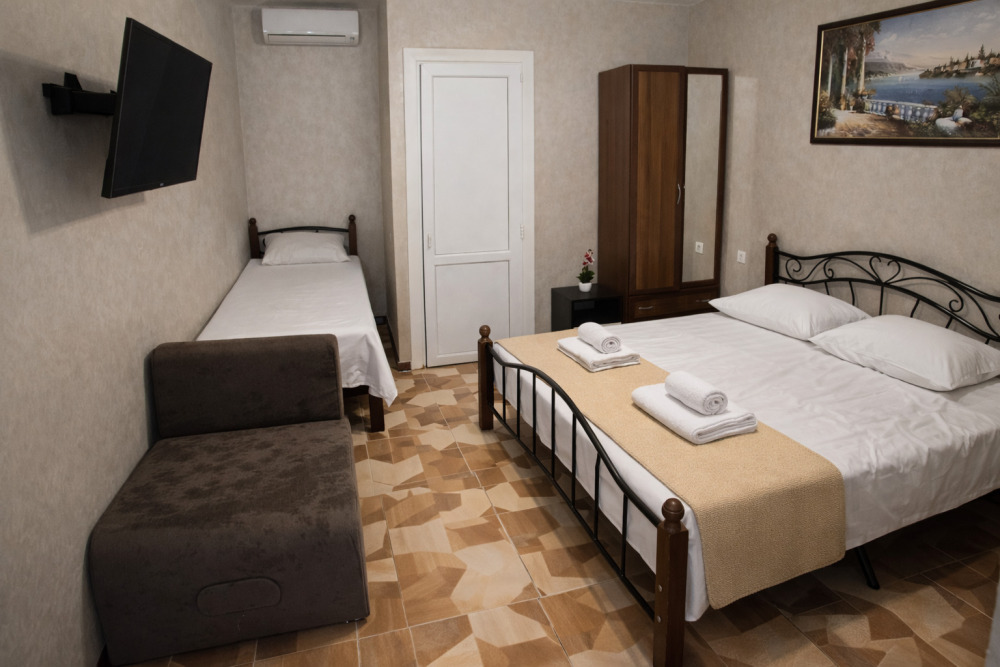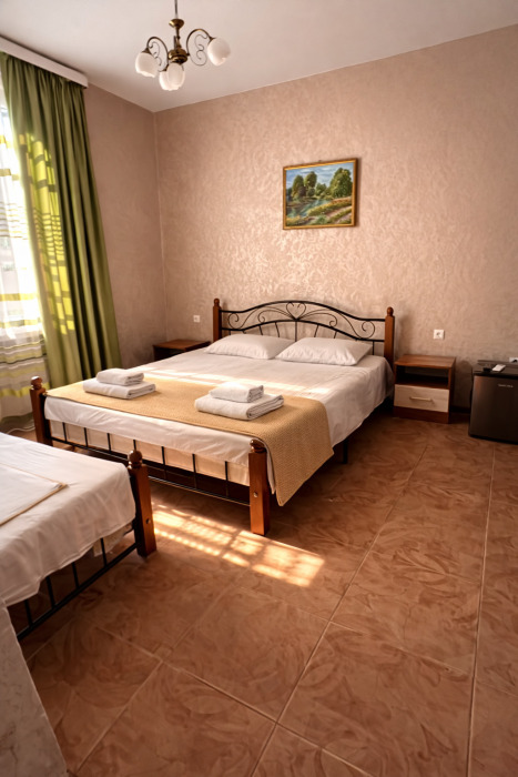 В номере есть всё необходимое для комфортного проживания: собственный санузел с душем, кондиционер для приятной прохлады в жаркие дни, холодильник и телевизор. Гостям предоставляются чистое постельное бельё, полотенца и мыльные принадлежности.