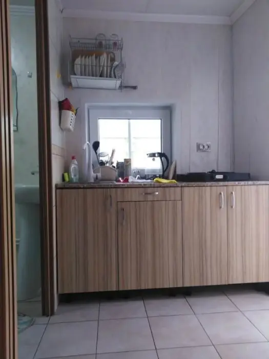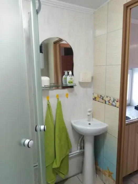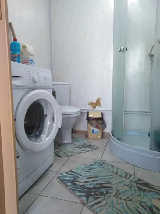 В доме две смежные комнаты, небольшая кухня и санузел с душевой кабиной ,стиральной машиной.