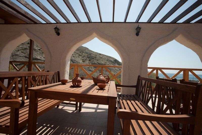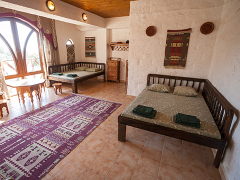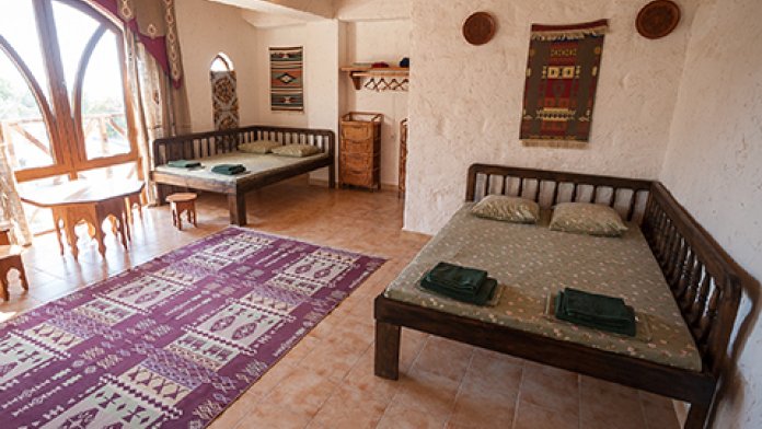 Номера выполнены в восточном стиле, в отделке номеров использованы только натуральные материалы: глина, камень, песок, солома.